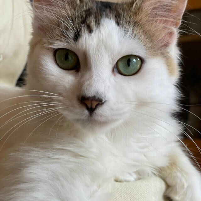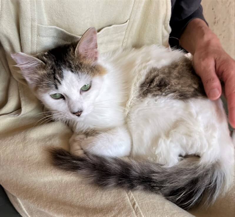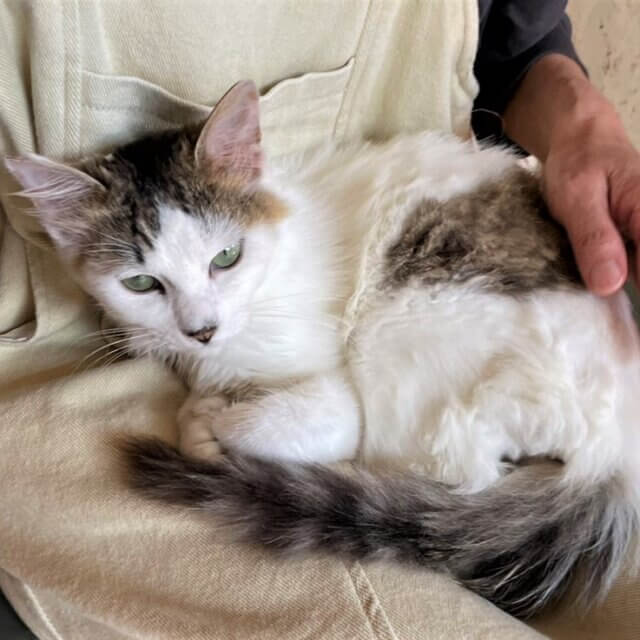 【毛色・柄】 白+キジ、長毛(担当 秋元)