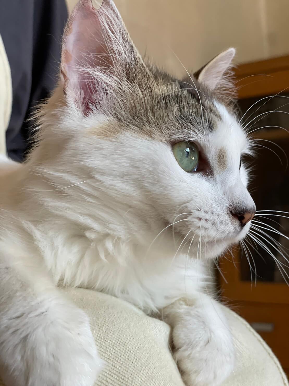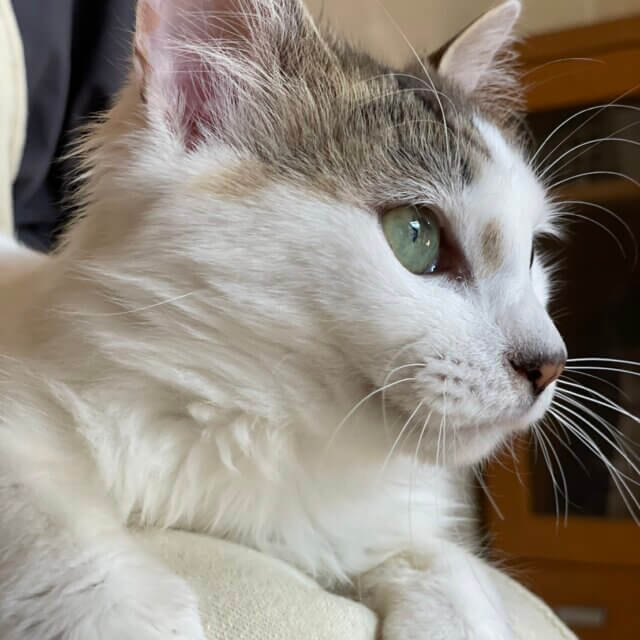 長毛種、目がエメラルドグリーンで神秘的。