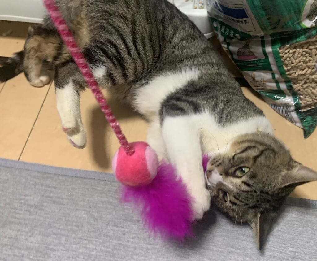 強烈に人間が大好き♥遊んで~抱っこして~と、ゴロゴロ&スリスリ♪オモチャが大好きでいつまでも飽きずに遊びます。
