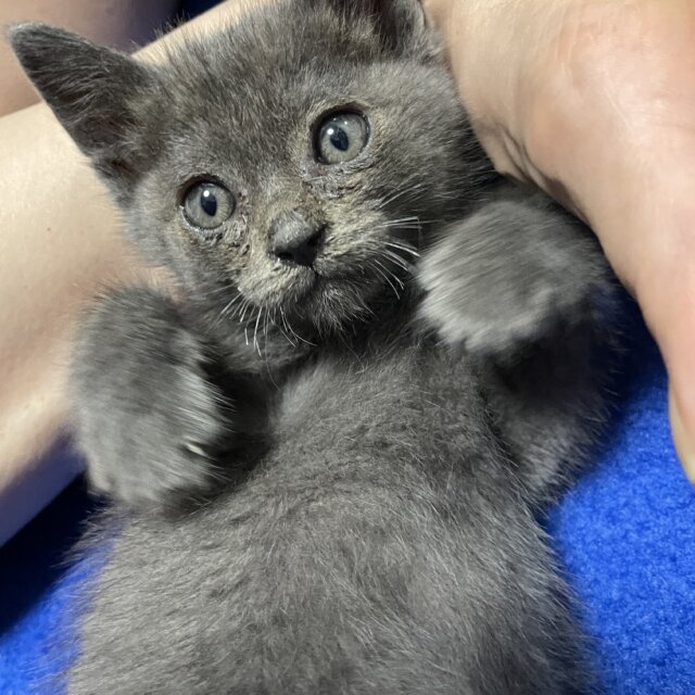 猫風邪をひいていて、翌日は台風の影響で暴風雨が予報されていたので、命の危険があるため、緊急保護しました。
