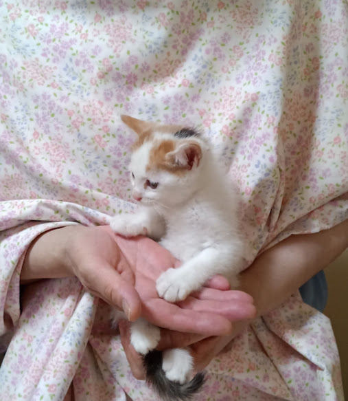 子猫なので、ケージを用意してくださる方、猫だけのお留守番の少ないご家庭にお願いします。