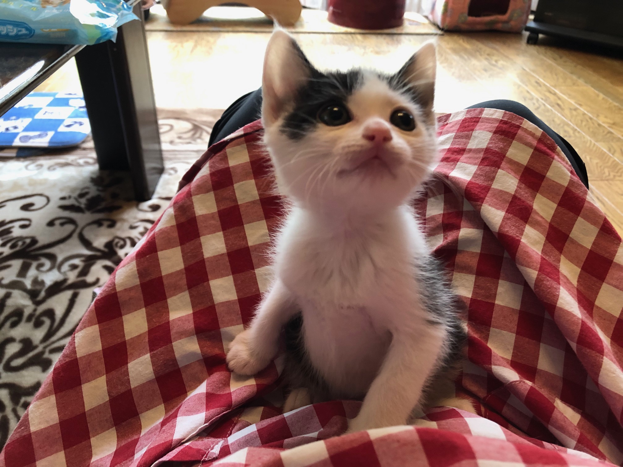 人が大好きな白黒子猫のあず!