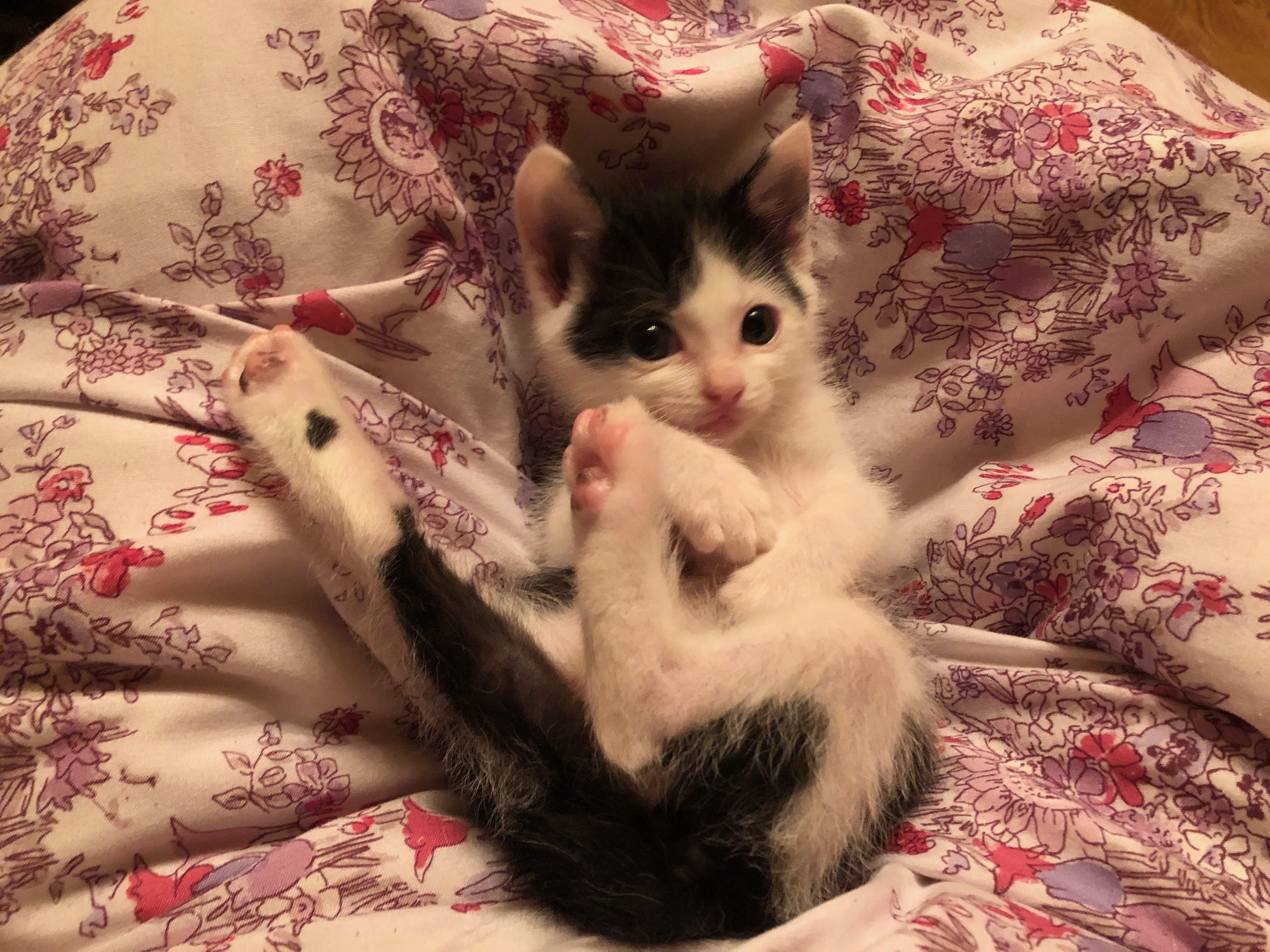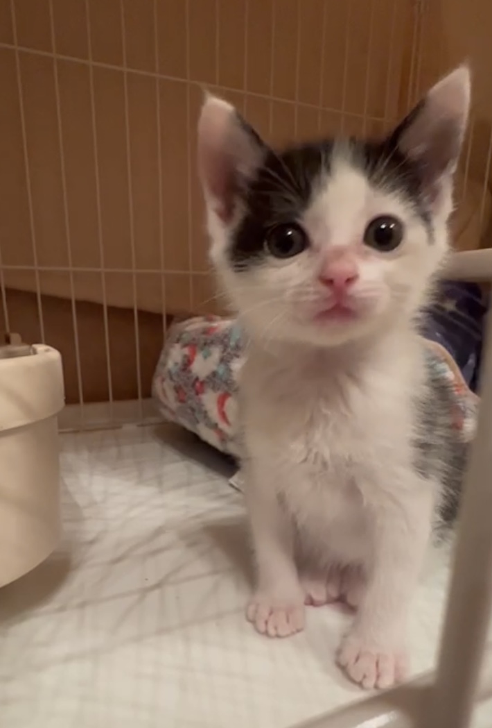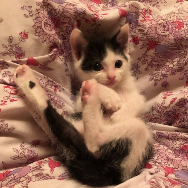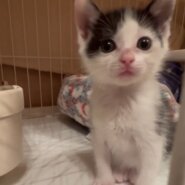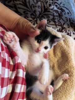 210gの乳飲子で保護して育てて来ましたが、とても可愛い白黒女の子です。