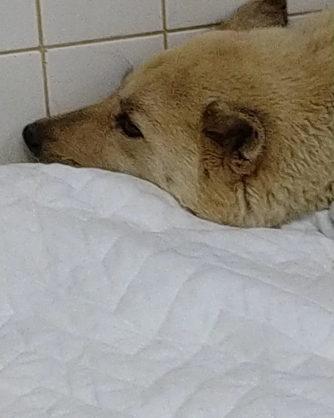 野犬として過酷の中を一生懸命生きてきて、食べたい物もなく、お水もなく