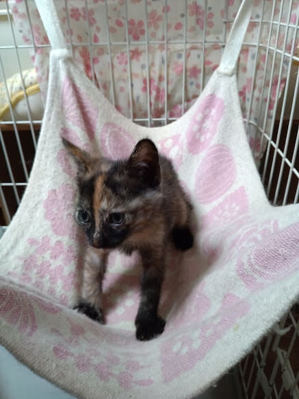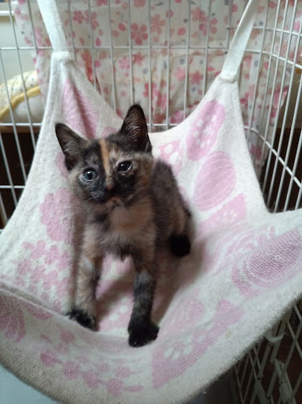 子猫なので、ケージを用意してくださる方、猫だけのお留守番の少ないご家庭にお願いします。