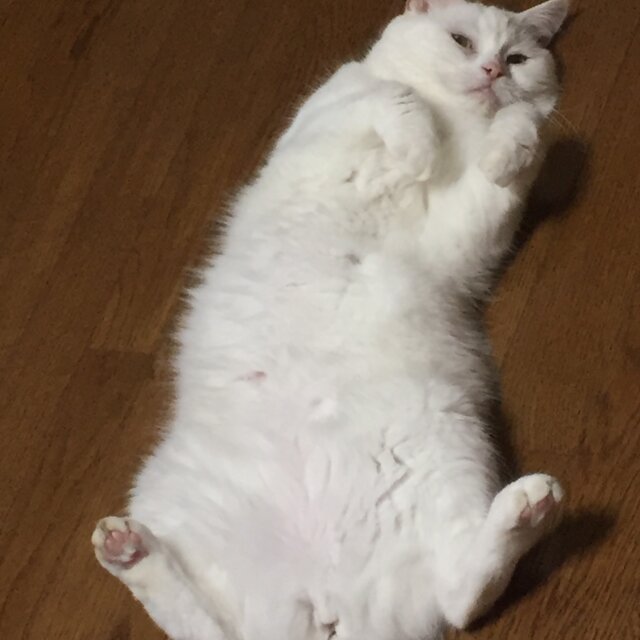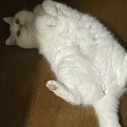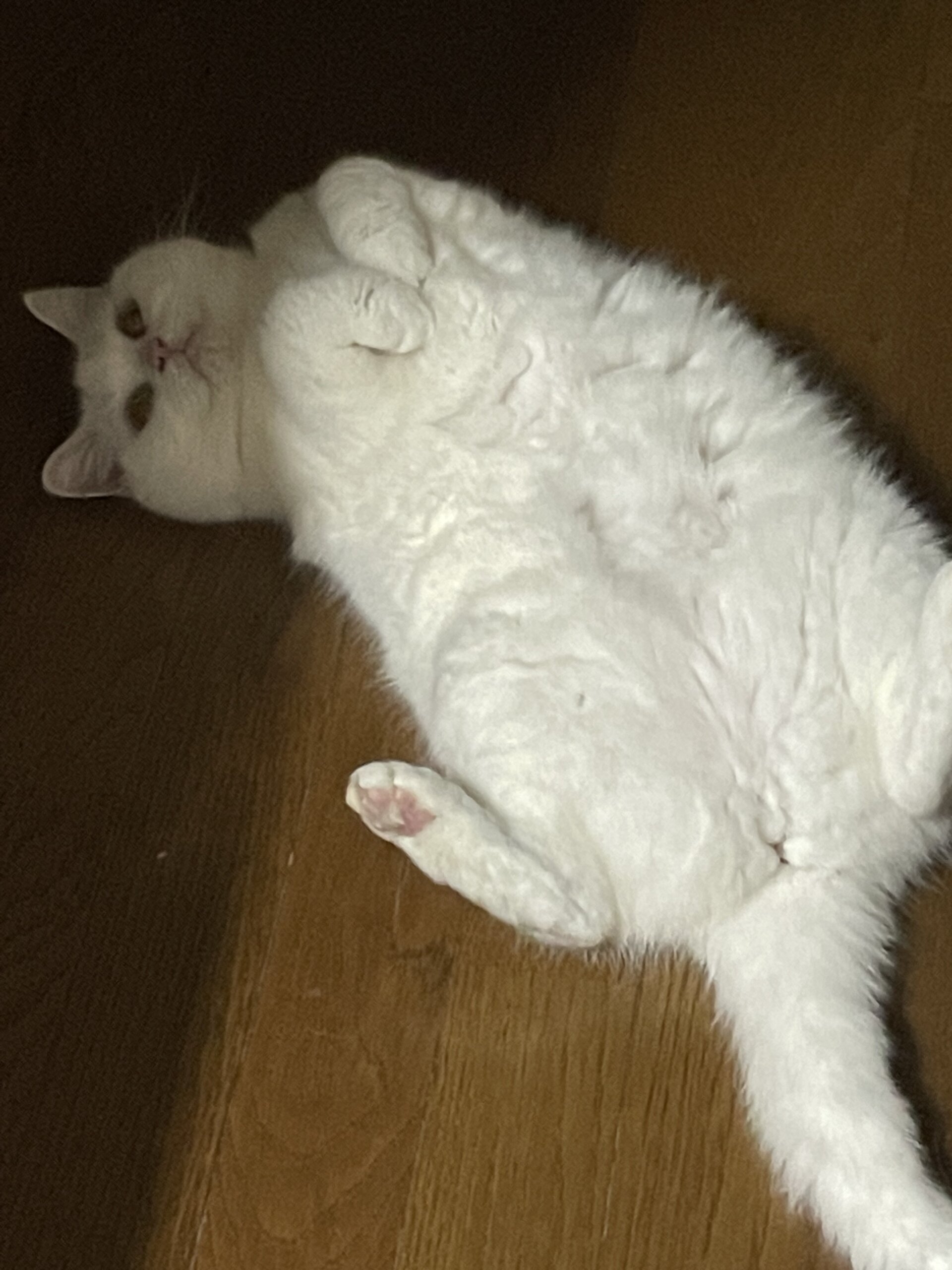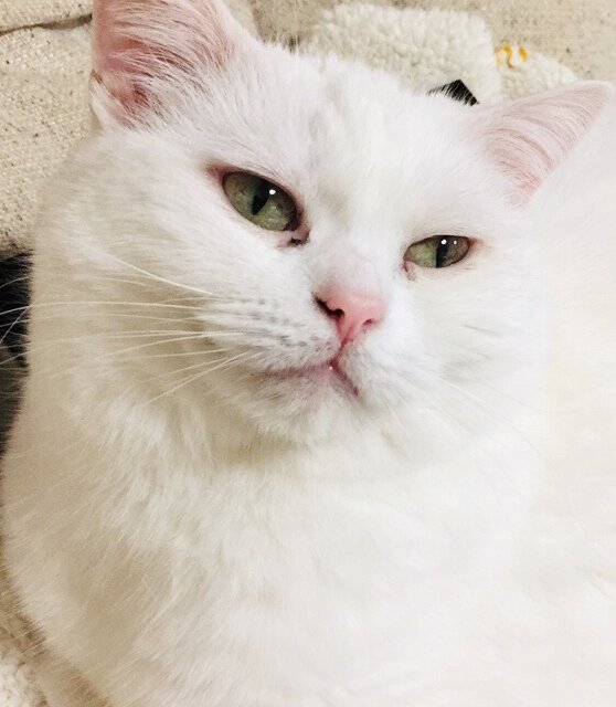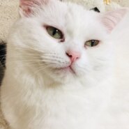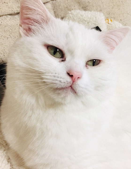 真っ白の立ち耳スコティッシュ、6歳の女の子です。