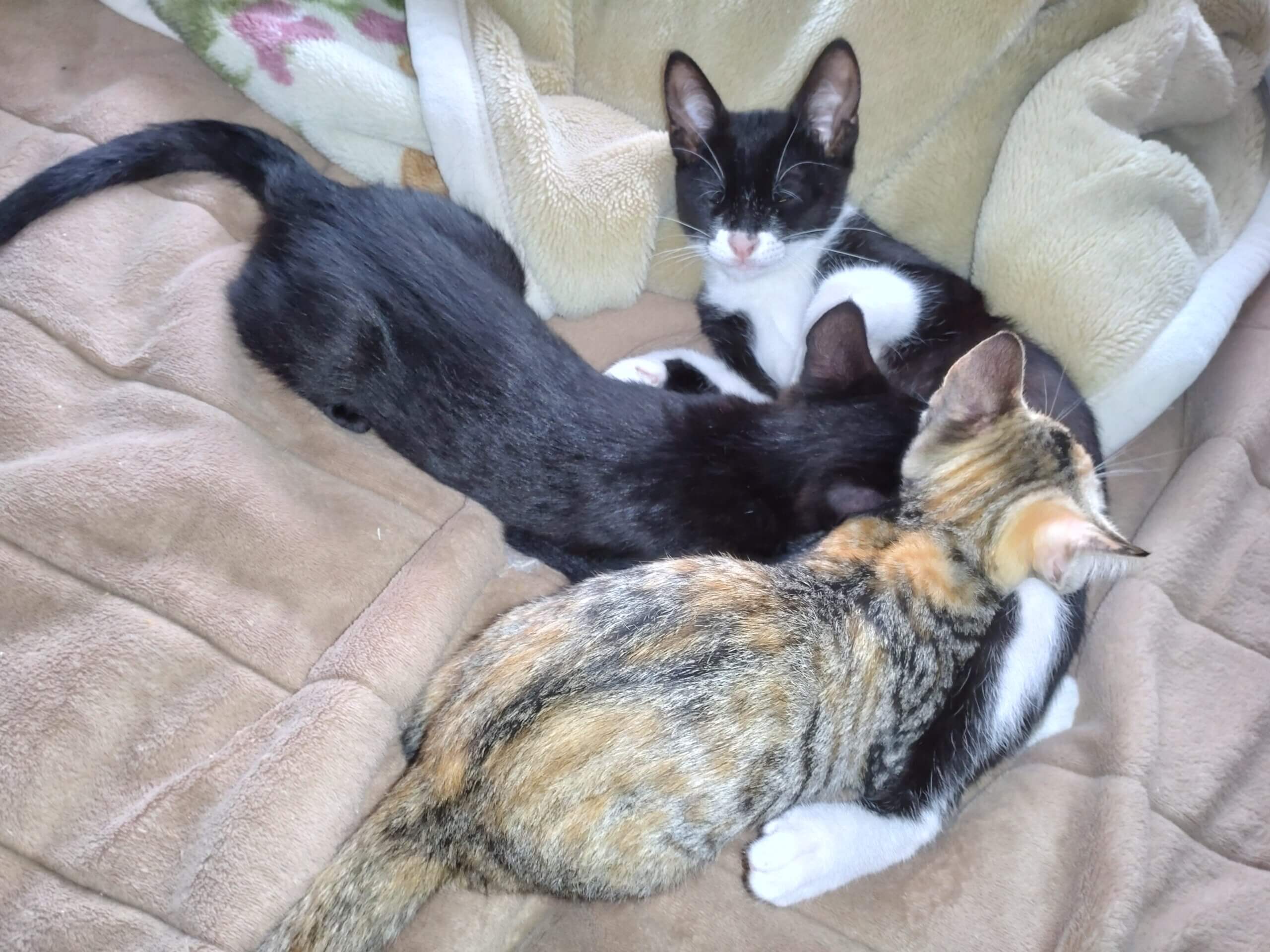 二組の野良猫が裏庭に引っ越ししてきました。ほっておくこともできず。親猫とともに保護しました。先住猫もいるため里親募集しております。うちの裏庭は猫の幼稚園なのでしょうか?