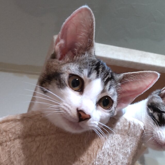 とても小柄で、男の子3匹の兄弟に紅一点ですが、男の子たちに負けずに日々にゃんプロを繰り広げています。