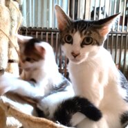 ママ猫は生後8カ月から10カ月で、本人もまだ子どもです。