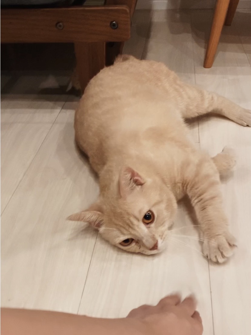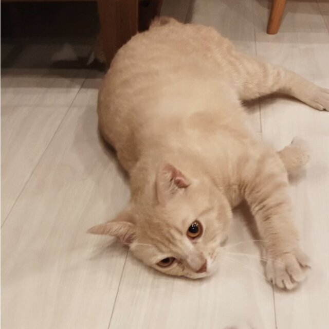 おそらくブリティッシュショートヘア系スコティッシュフォールドの為、大柄でまだ成長期です。