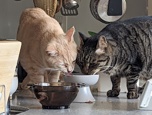 オスの先住猫(超おとなしい系)とも適度な距離をとりながら良好な関係を保っています。