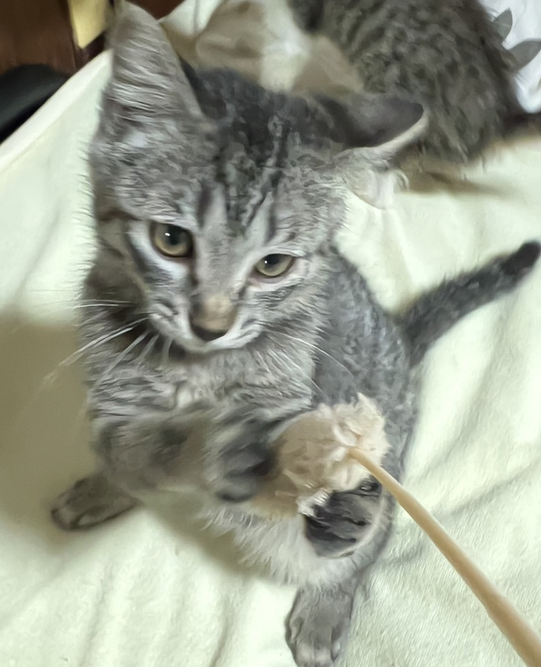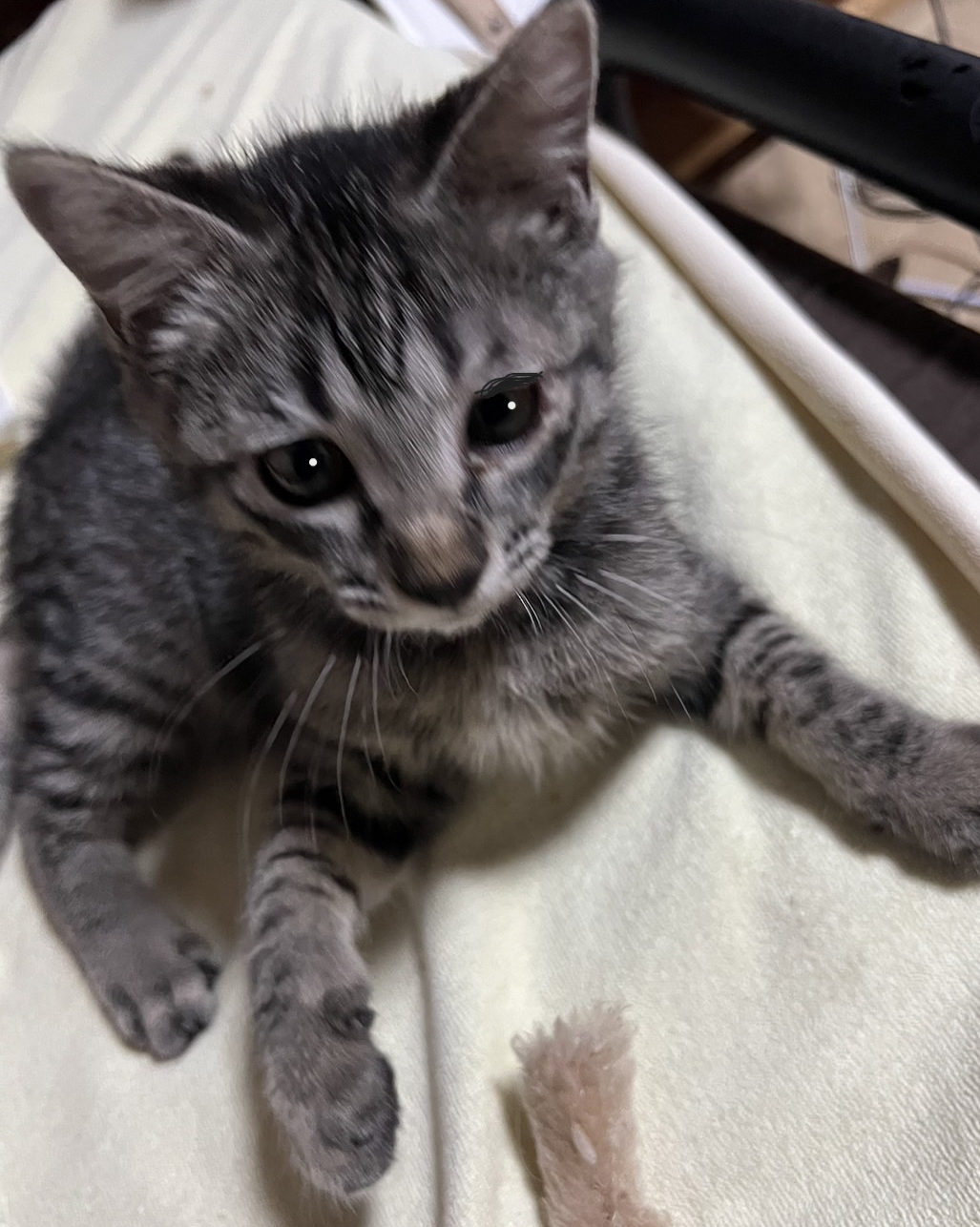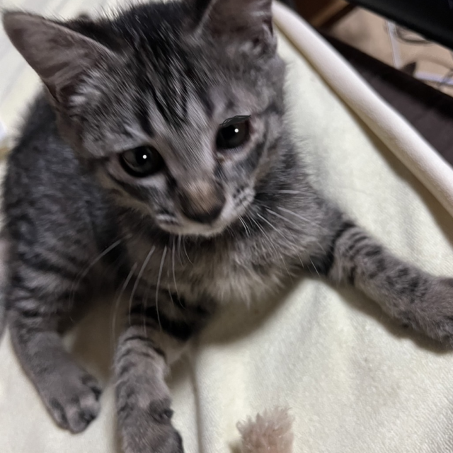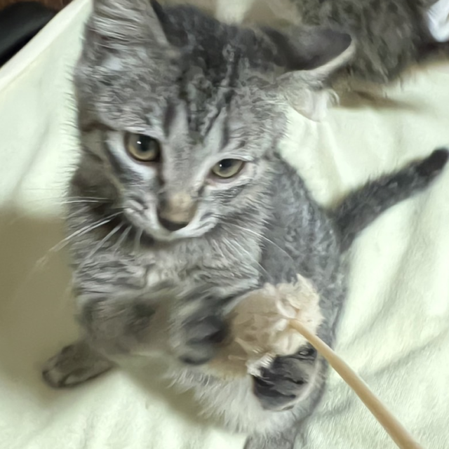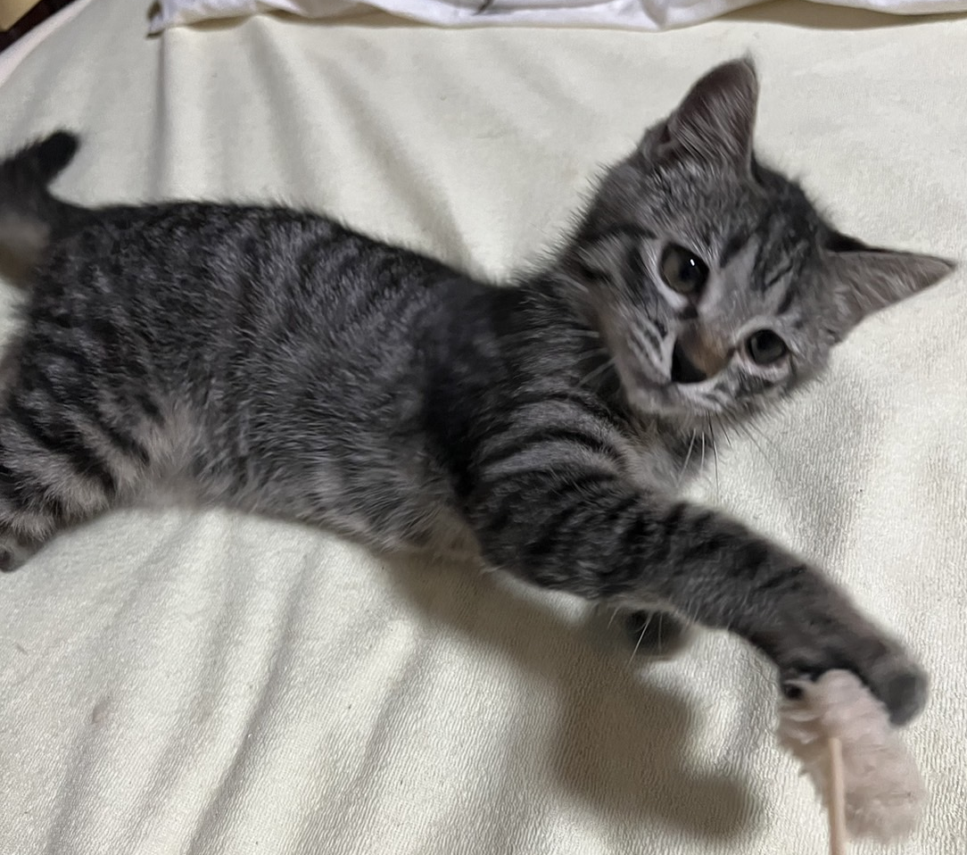 遊ぶの大好き・3ヵ月のキジトラ・くぅ君