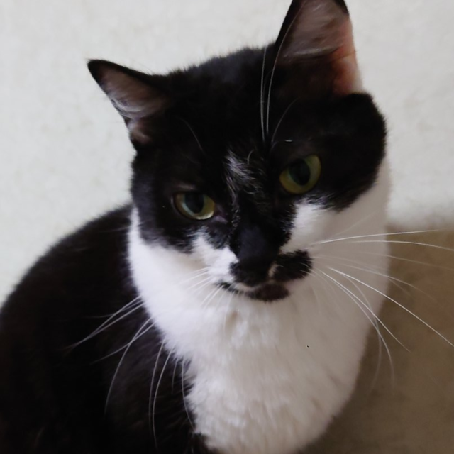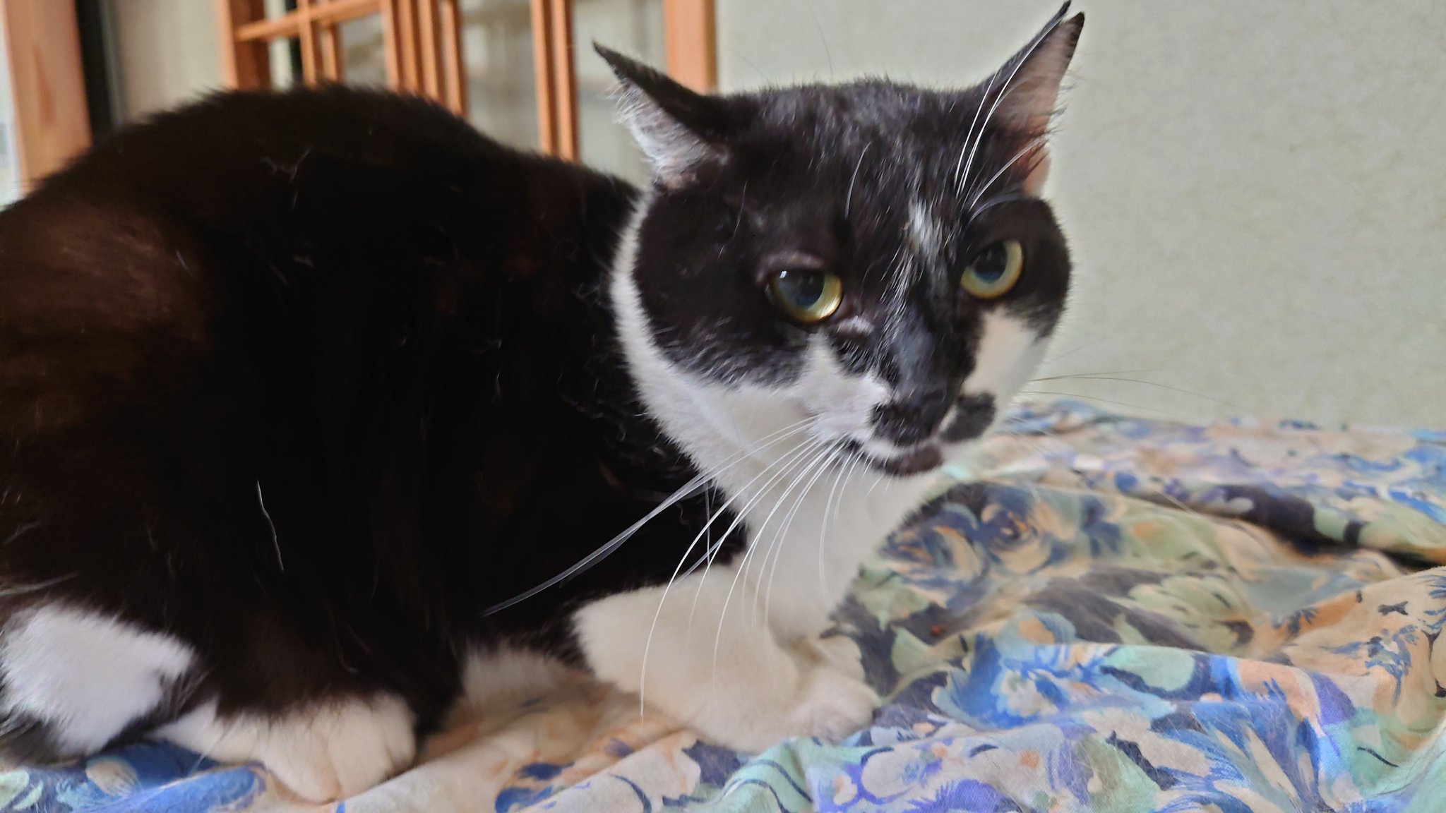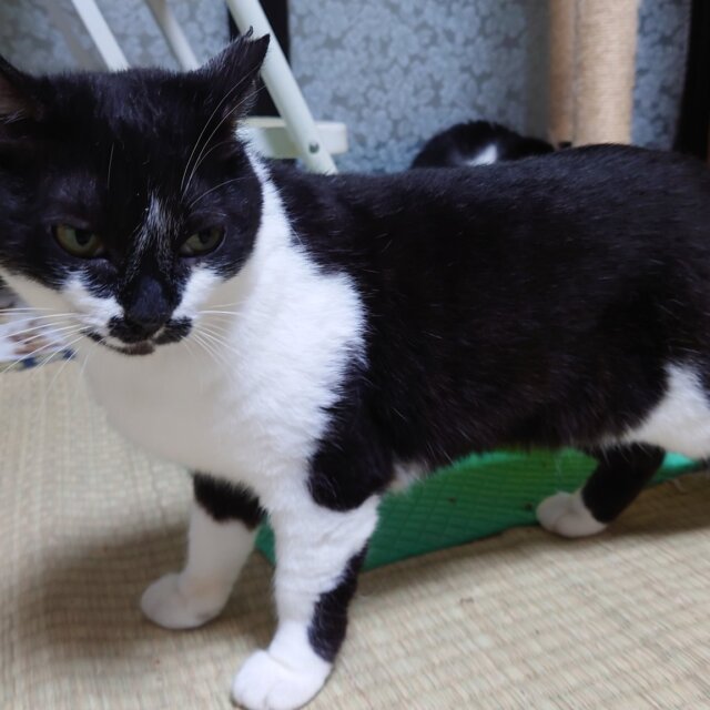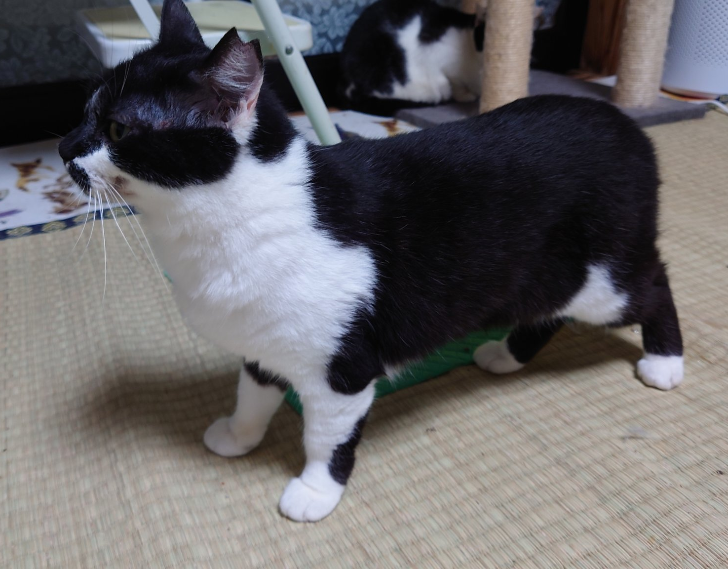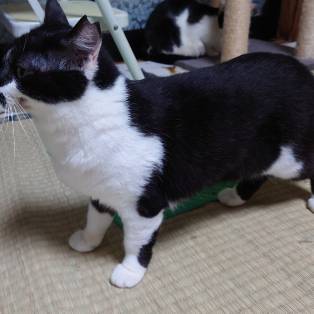 年齢の割に小柄でトコトコと歩く姿がかわいいです。おしりをポンポンと叩かれるのが大好きで、ポンポンされるとおしりが持ち上がって→前足踏み踏み→寝転んでへそ天、というお決まりの流れがあります。