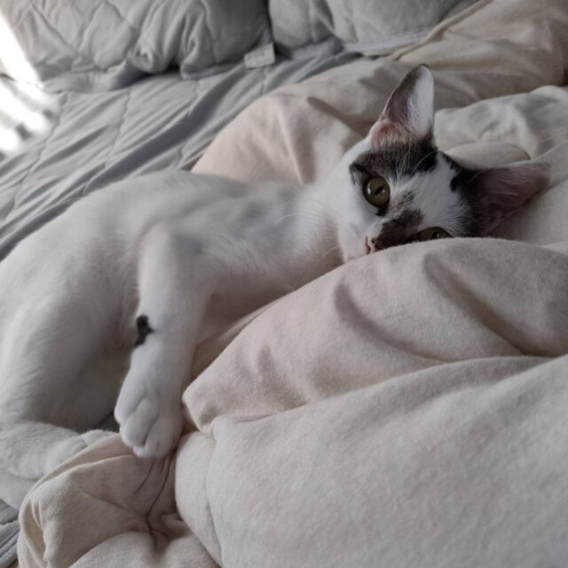 とにかく甘えん坊でナデナデも抱っこも大好きです。避妊手術も済んでいますので初心者さまにもオススメです。お留守番もでき、先住猫ちゃんがいるお家も可能です。