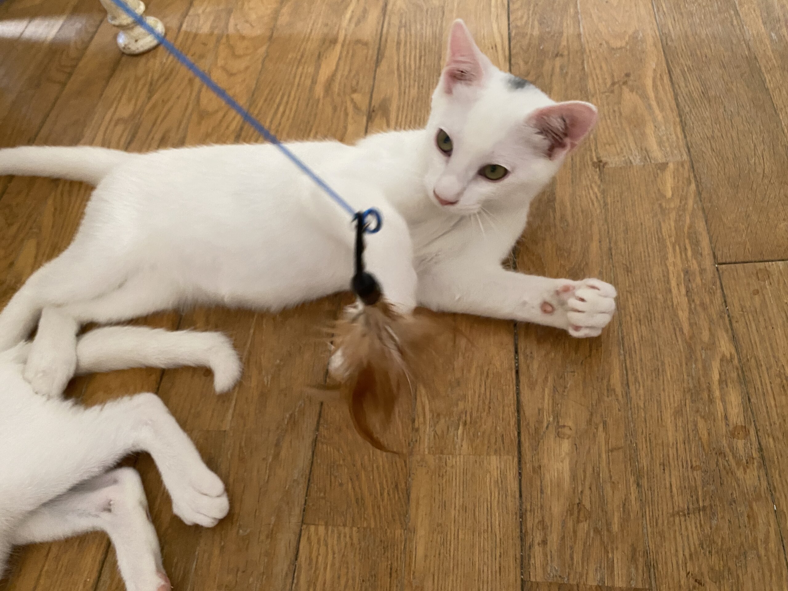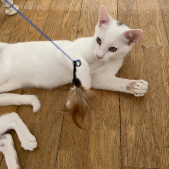 やむおえず1匹譲渡の場合は先住猫さんがいるご家庭がうれしいです。寂しがりやで遊ぶのが大好きです。