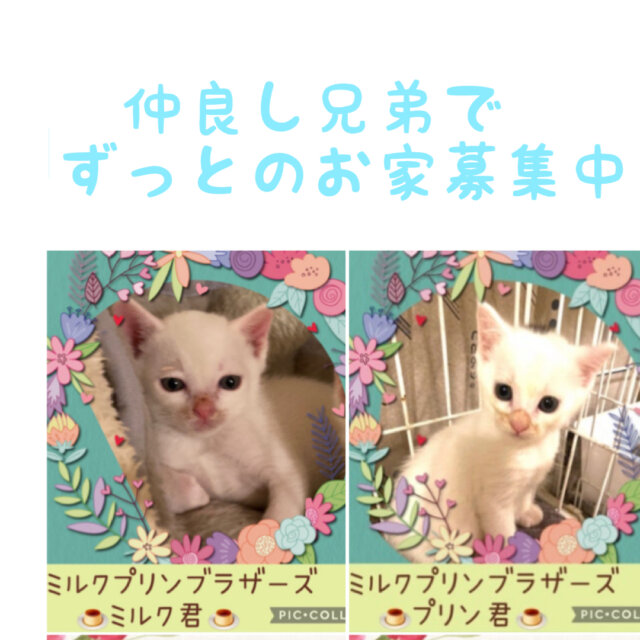 優先させていただきます。(兄弟プリン君)やむおえず1匹譲渡の場合は先住猫さんがいるご家庭がうれしいです。寂しがりやで遊ぶのが大好きです。