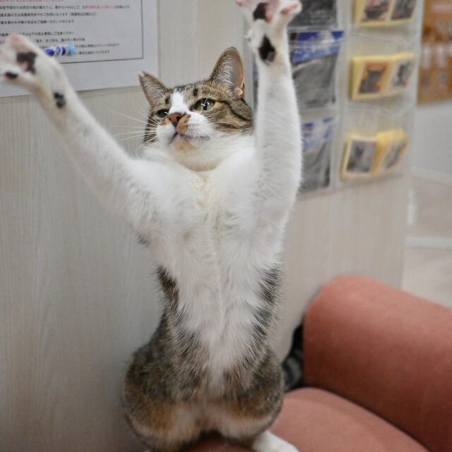 おもちゃ大好き!普段控えめですが、おもちゃで遊んでもらえるとわかると、他の猫を押しのけても来ます!笑