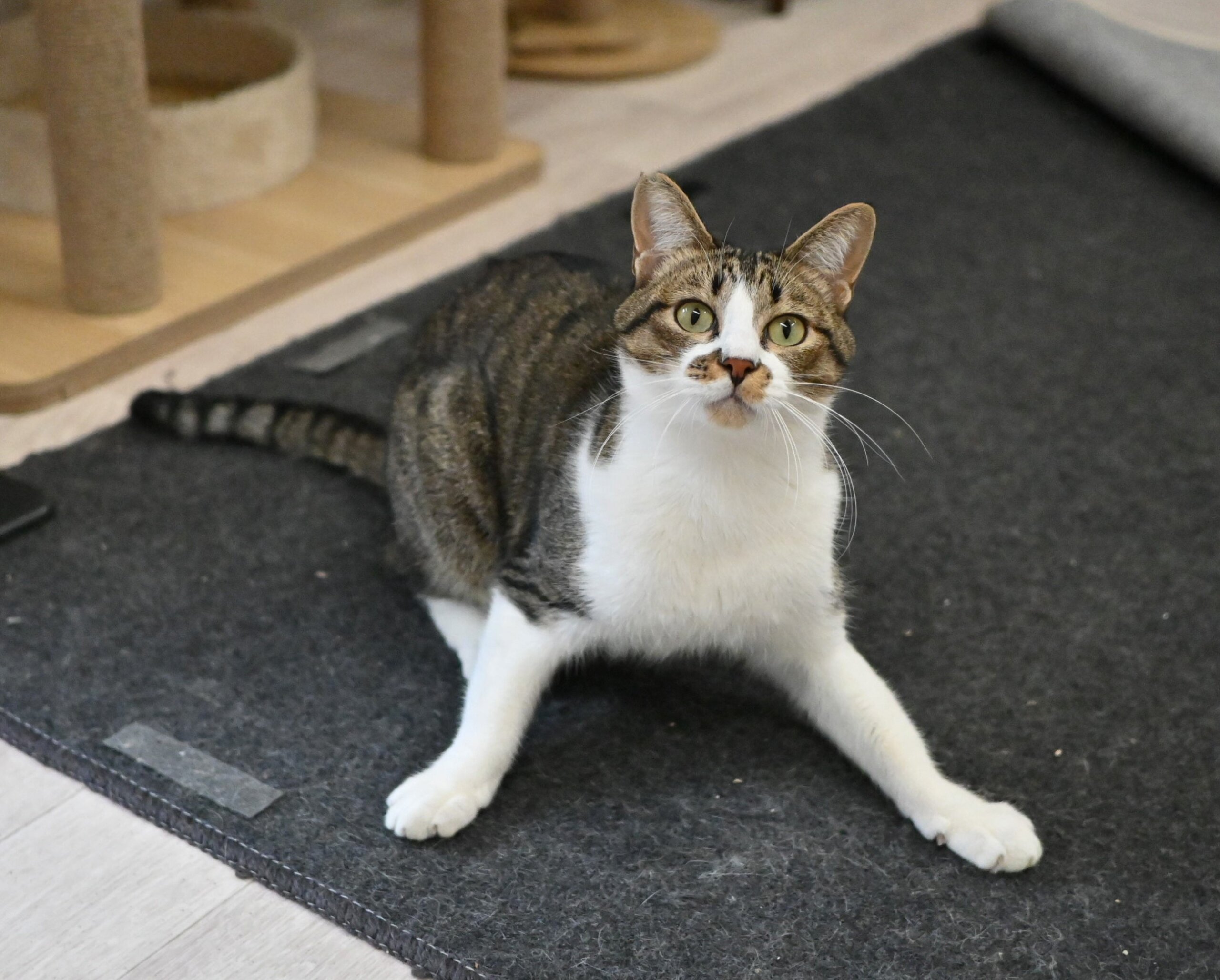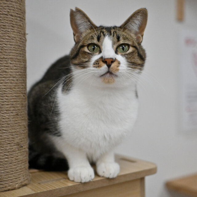 人が近づくと&撫でようとすると素早く察知して逃げちゃうのですが、入所してからの変化を考えると、これからもっと人馴れが進むと期待しています。