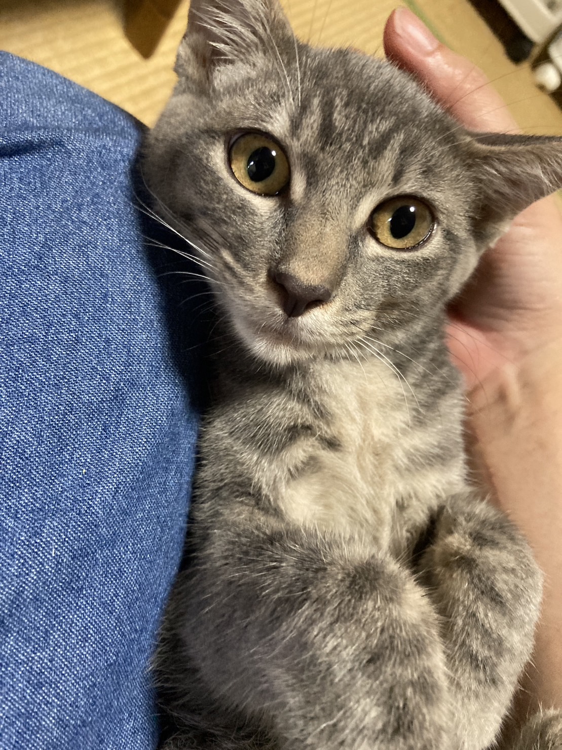 まだ怖がっていますが、いざ抱っこされるとゴロゴロいったり、なでるとウットリもします。