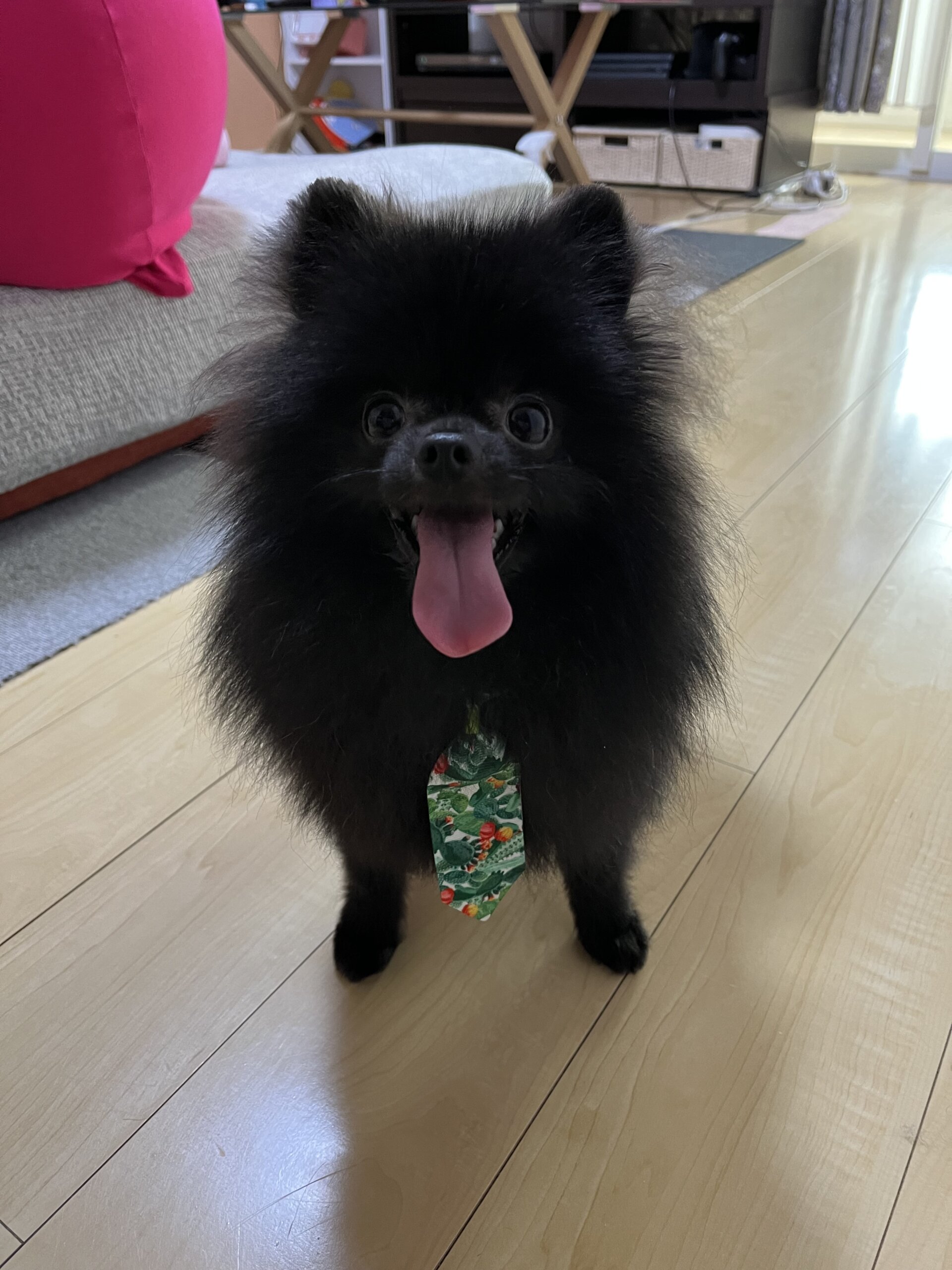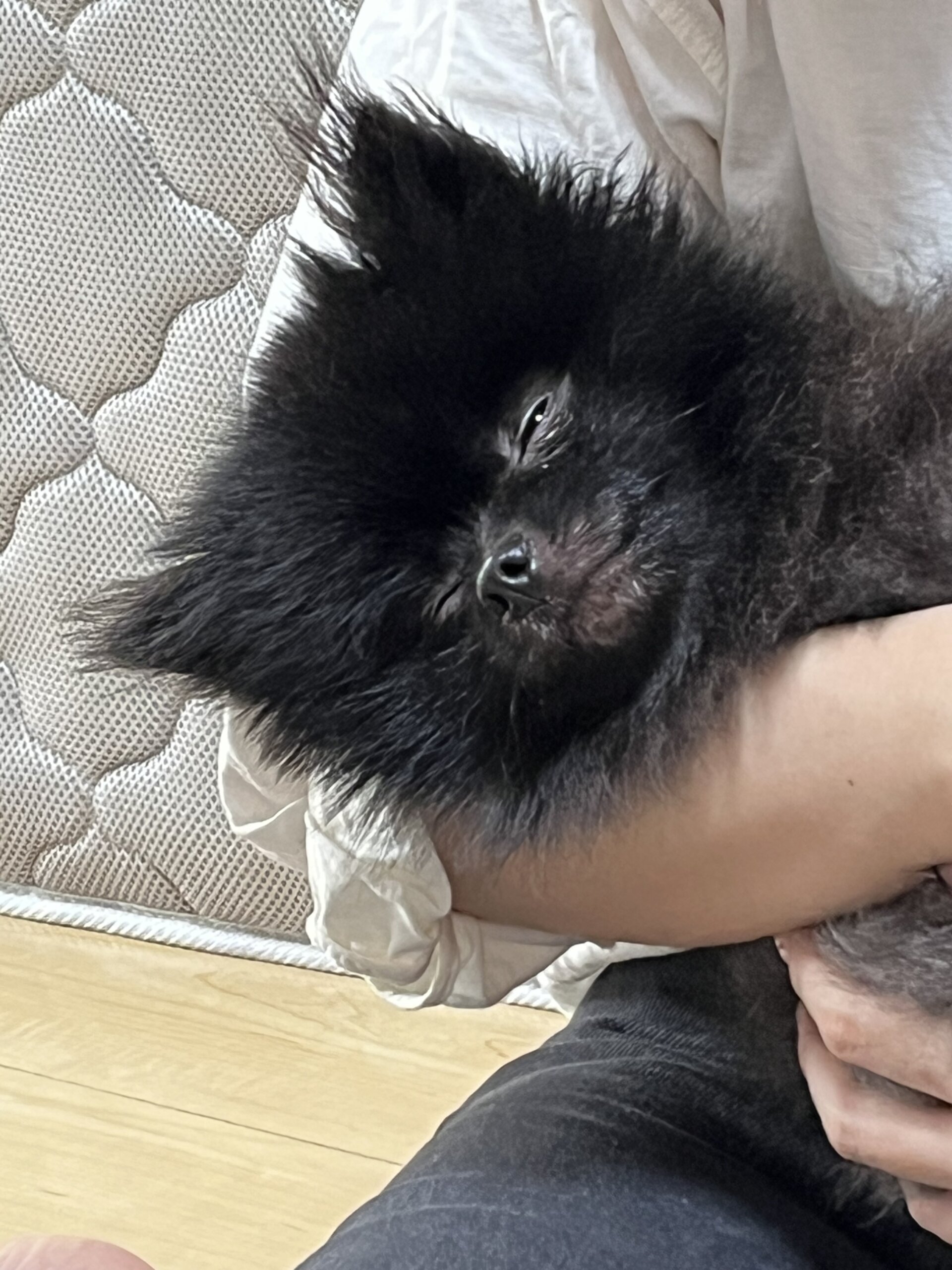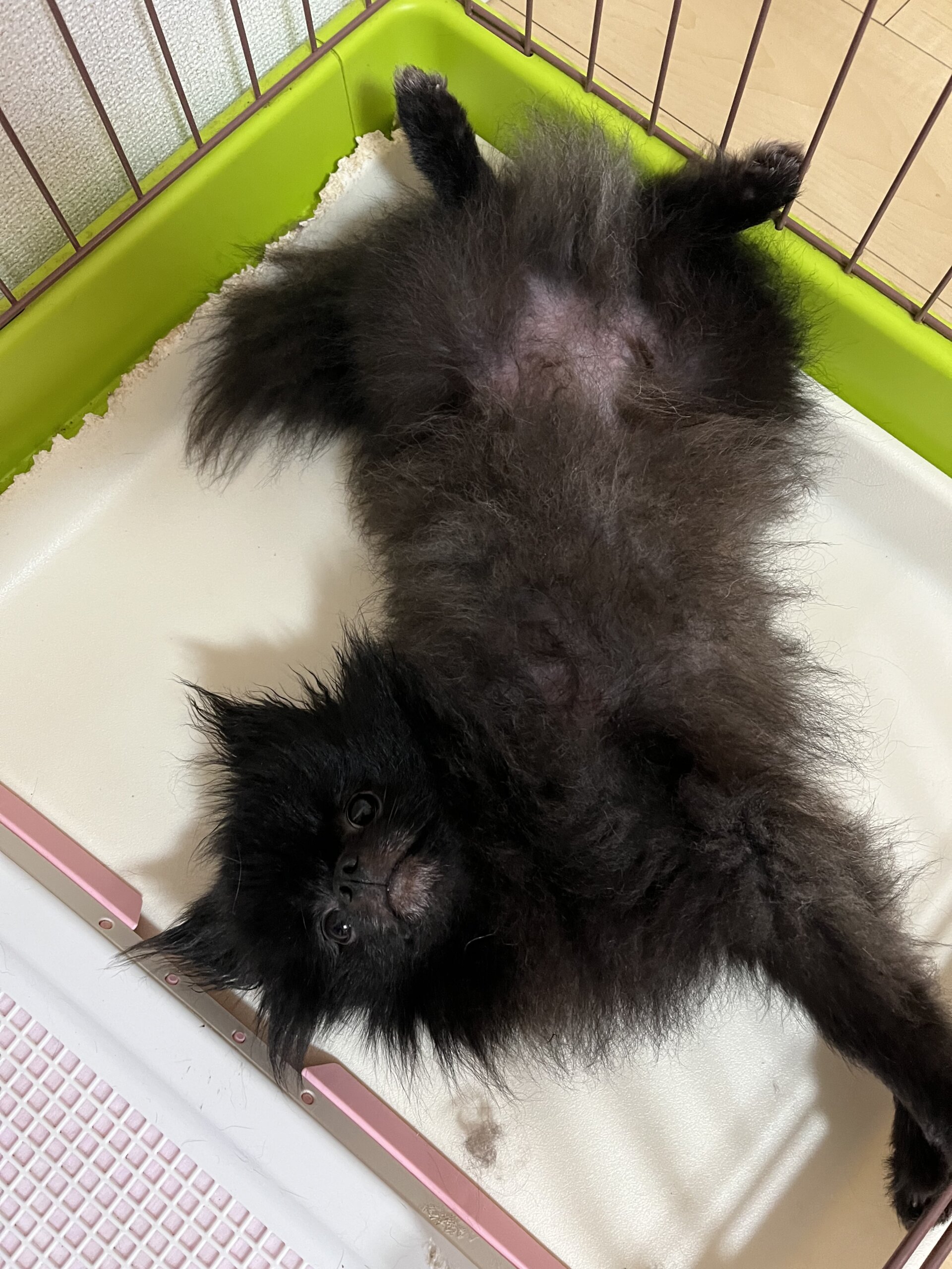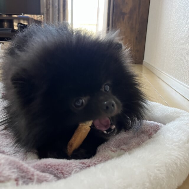 ブラックのポメラニアンです。人懐っこく、抱かれると全然動かないのでブラッシングや爪切りがとても簡単です。ご飯の時間が近づいてきた時以外はそこまで無駄吠えもしません。少し脂質な体質ですので、週一のお風呂をお願い致します。