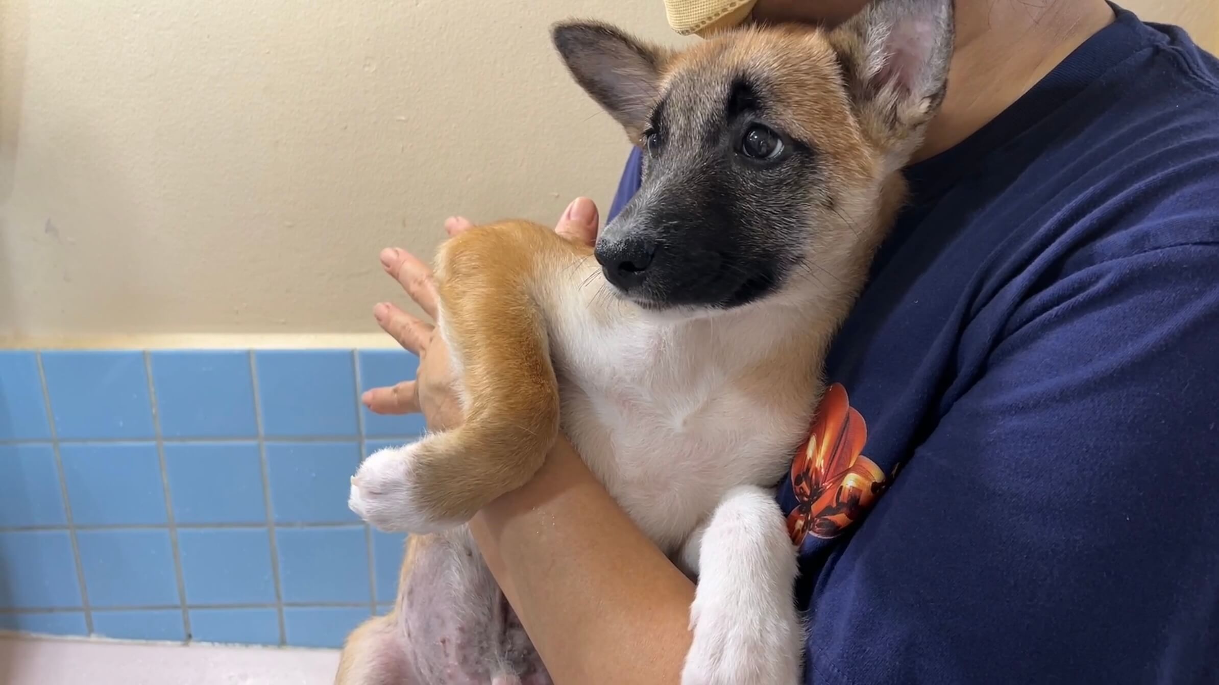 保護した当初は皮膚の問題もありましたが、毎週、お風呂に入り今ではほとんど完治。引き渡し時には、綺麗な毛並みになっている事でしょう。