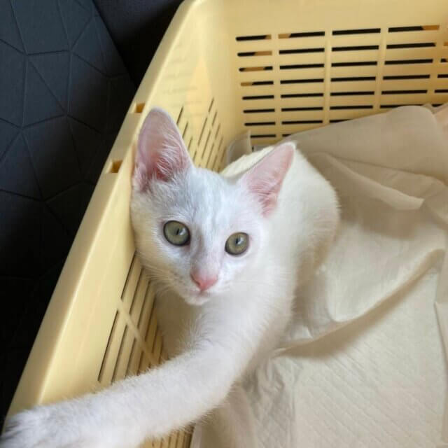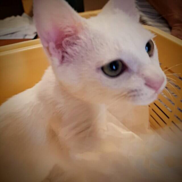 ⚪︎全身雪のように真っ白で、トパーズのような黄色い目がチャームポイントの美猫です♪