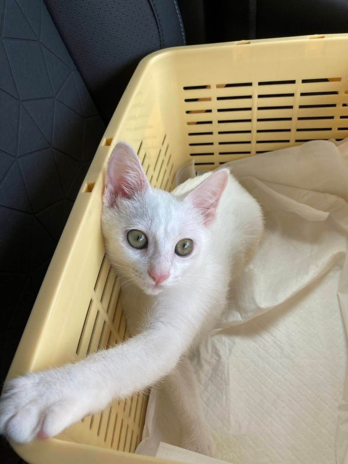 2023年7月12日の夜中に車で走行中、当該猫ちゃんが足を引きずりながら交通量の多い車道をひとりで横切っていたのを見かけ、どうしても放っておけずにやむなく緊急保護しました。