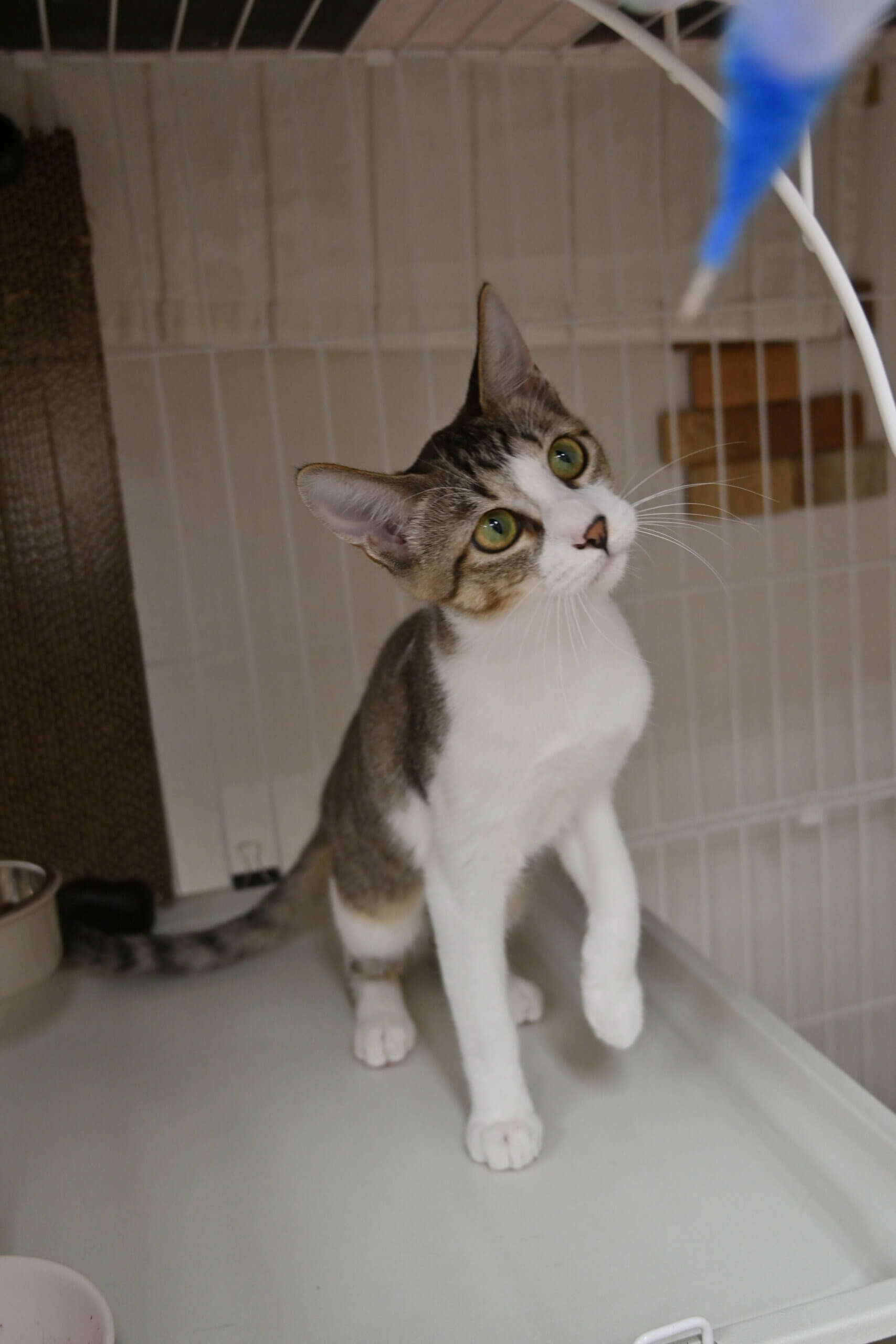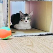 シェルターに来たばかりでまだ少し人間が怖いようですが、ルークよりも先におもちゃに興味を示しました!