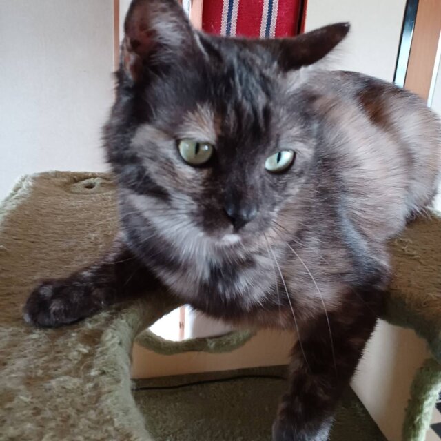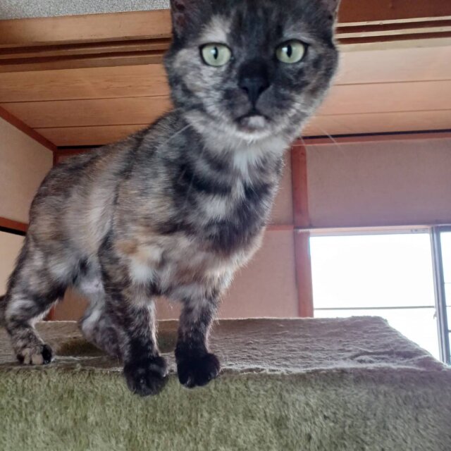 独立心が強く、人懐こいワケではないし、撫でられるのも好きではないみたいですが😅人間にも、他の猫にも優しく、ウマウマ大好きで、おもちゃで遊ぶのも大好きな元気いっぱいの女の子です。