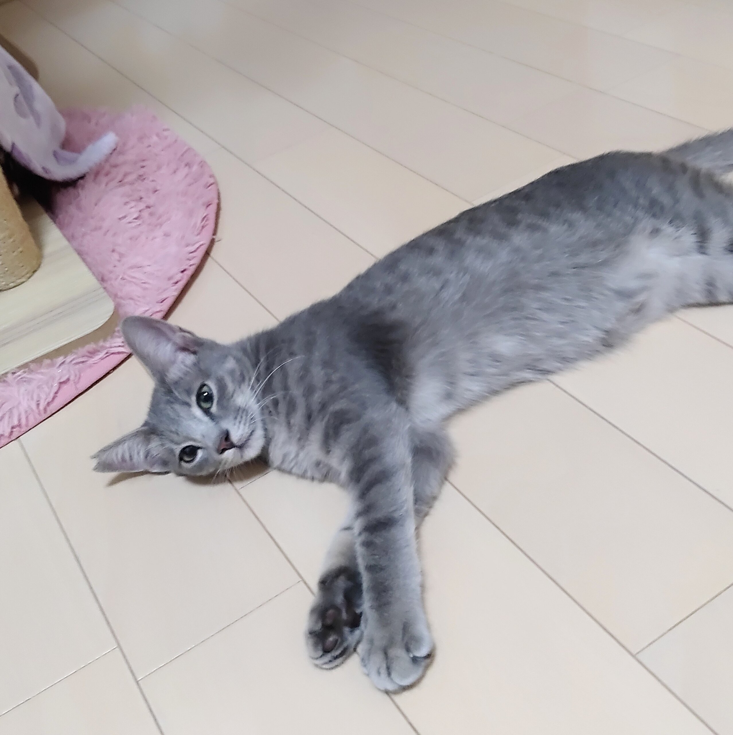 疲れてまったりしてるときがナデナデチャンス! ここぞとばかりに撫で回していると喉ゴロゴロ…と鳴らしてくれます。 (しつこ過ぎるとパンチされます) まだ子猫さんなので順応性もあり、慣れるのもはやいとおもいます。 できれば兄弟一緒のおうちに迎えていただけたらと思います。