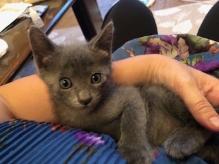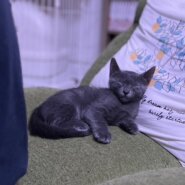 ロシアンブルーのようなグレーの可愛い男の子です。