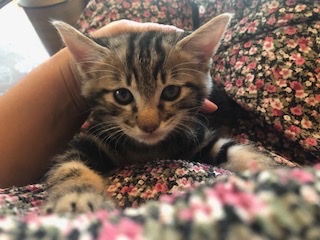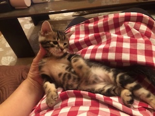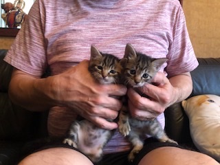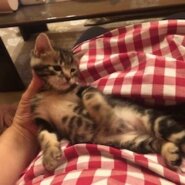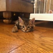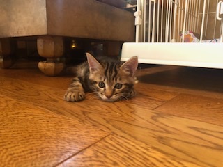食欲もあり、良く遊んで、とても元気で運動神経抜群です。ナデナデや抱っこもでき、賢い甘えん坊です。仲良しの妹エミリーと一緒に迎えてくださるご家族様を希望します。まだ小さな子猫なので、高齢者様、単身者様、お留守番の長いお家の方は、ご遠慮ください。