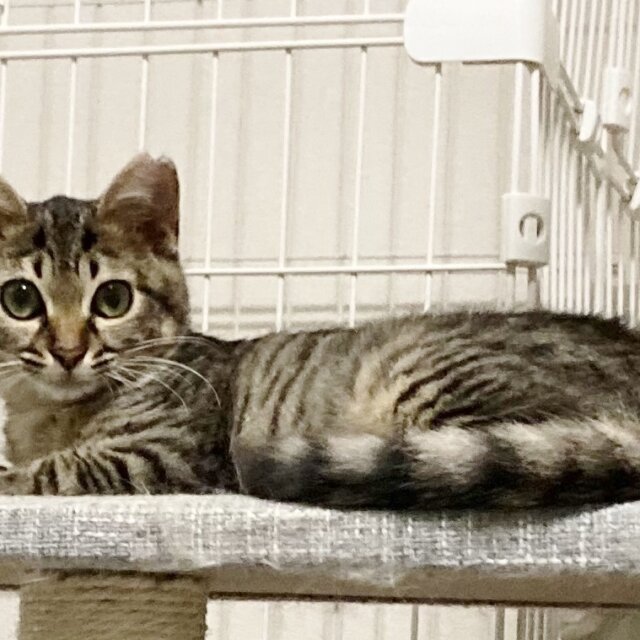保護当初から人馴れしていて触れます。慣れると擦り寄ってくる可愛い子です。