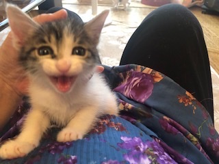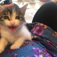 母猫が産み落として、胎盤が繋がっているところを保護して乳飲児から育ててきました。