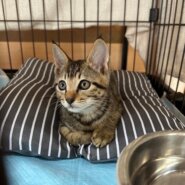 保護してから2週間は隔離期間中でゲージ内にいてもらっています。