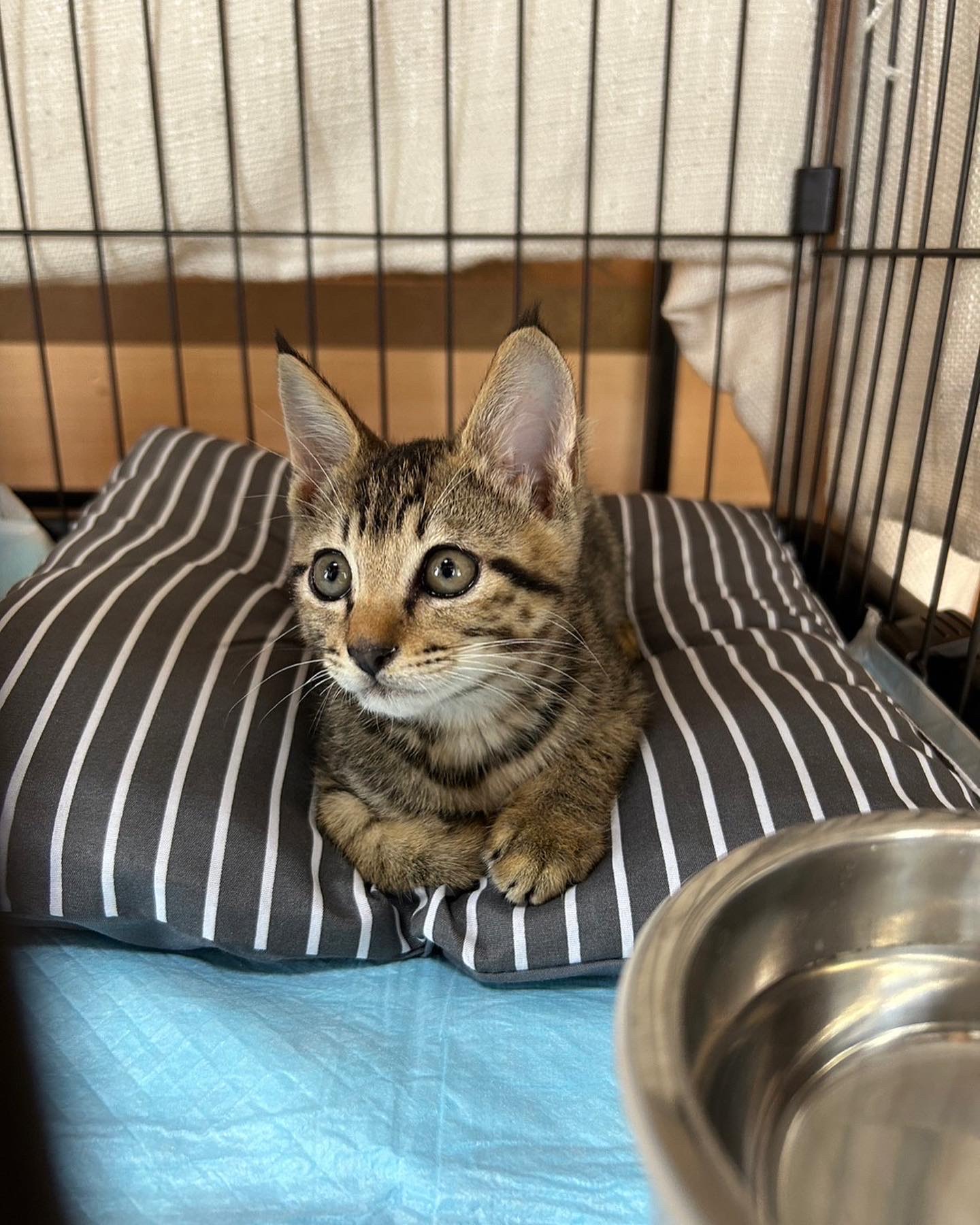 絶対に幸せになってもらいたいです。保護してから2週間は隔離期間中でゲージ内にいてもらっています。