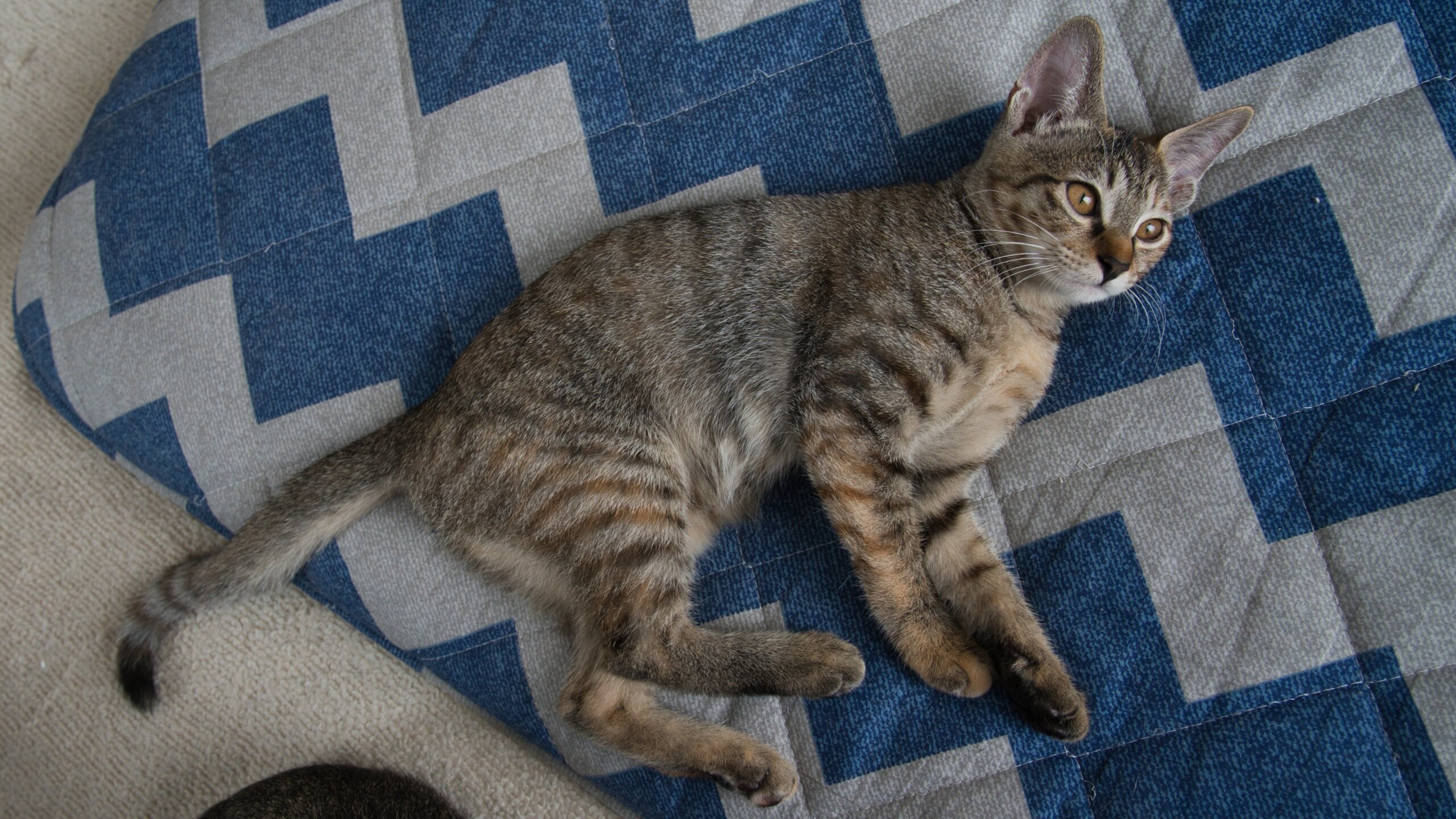 食べ物をよく食べて、他の猫ともよく遊びます。