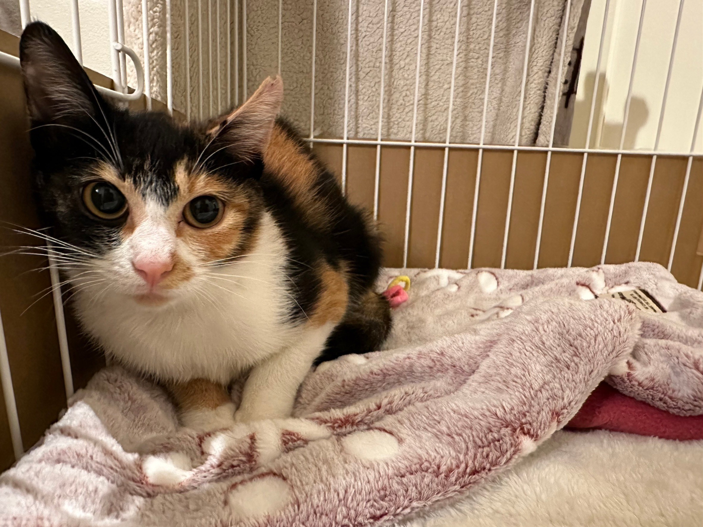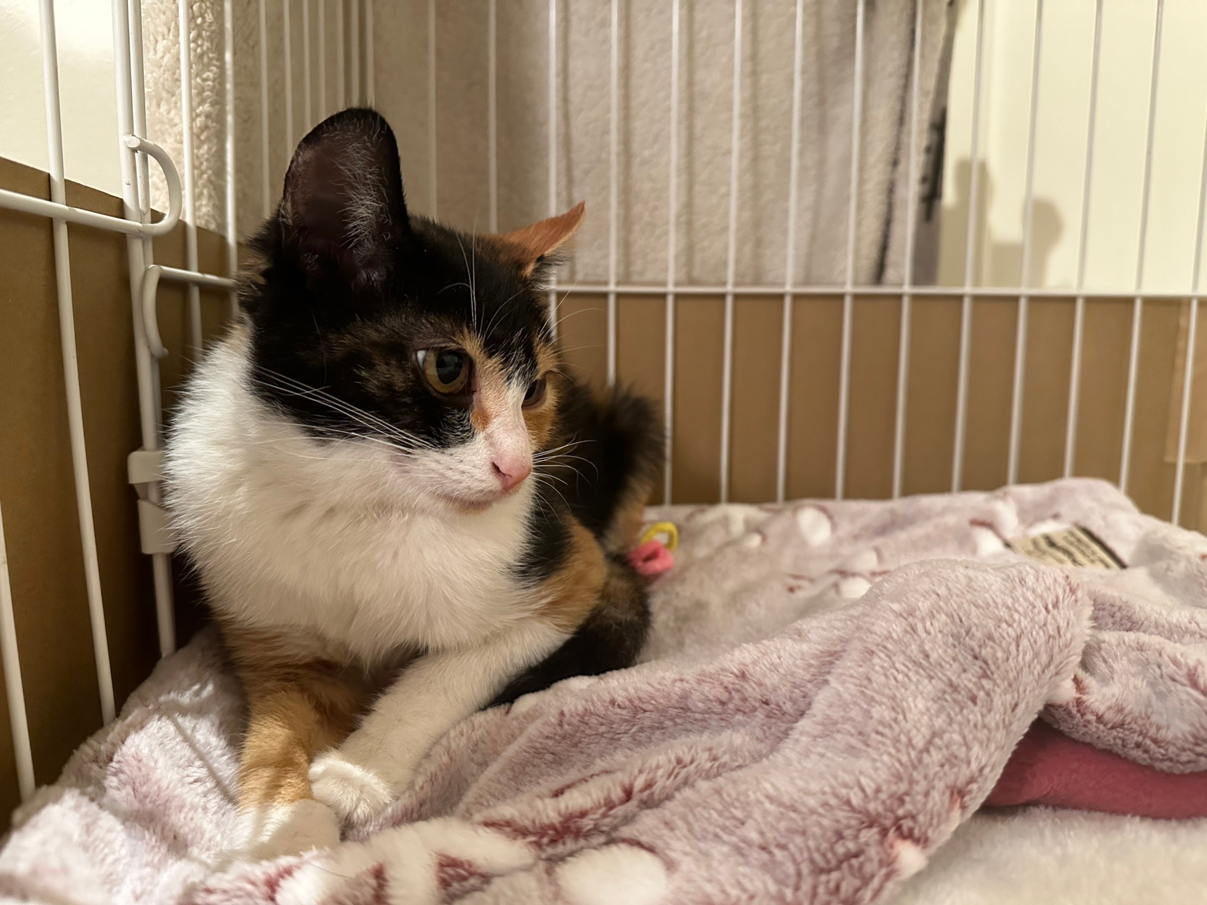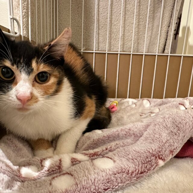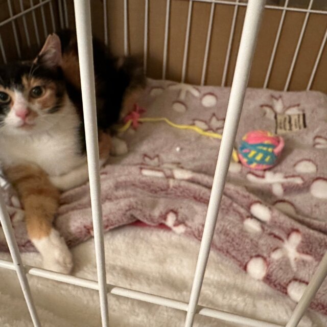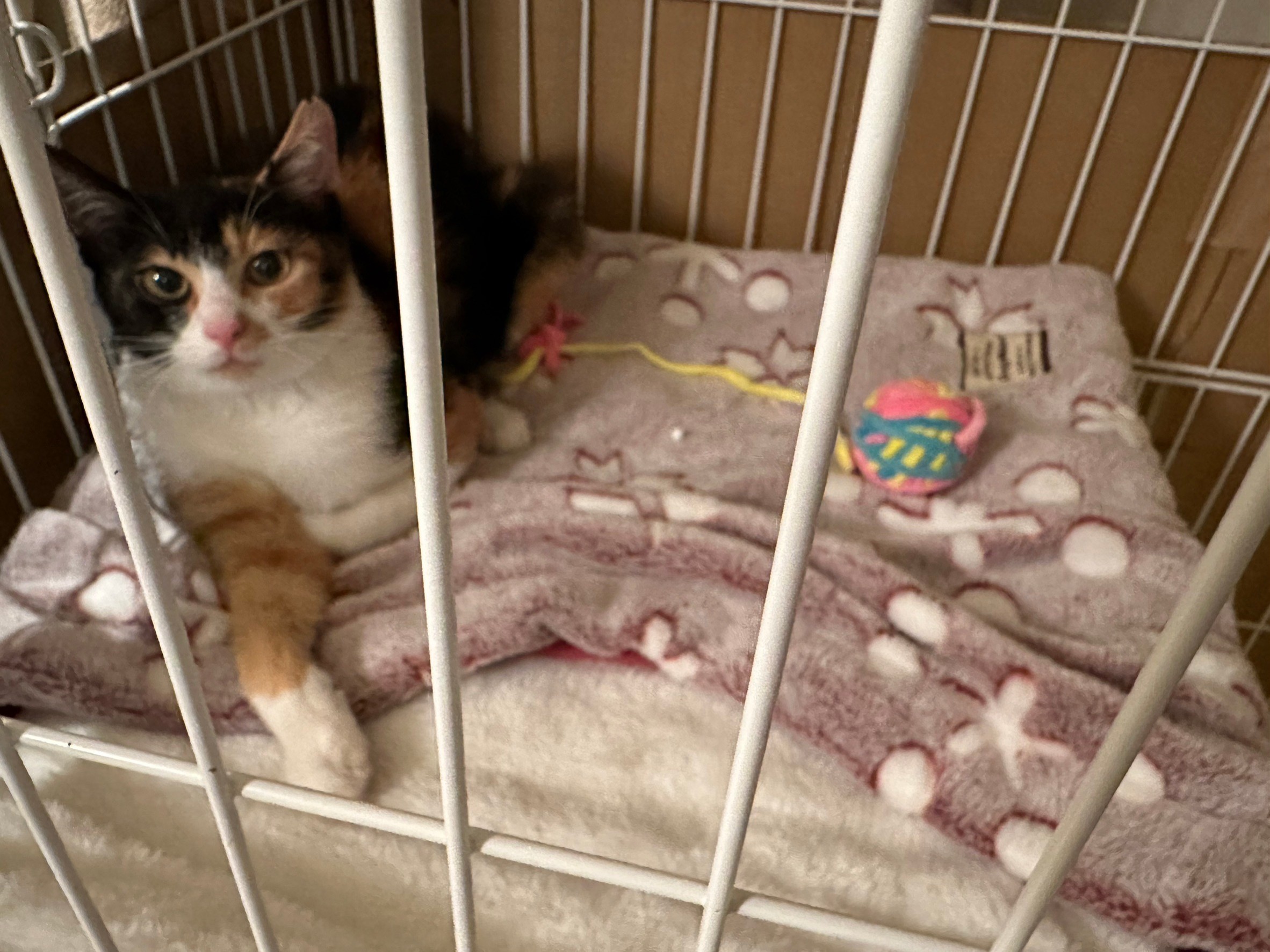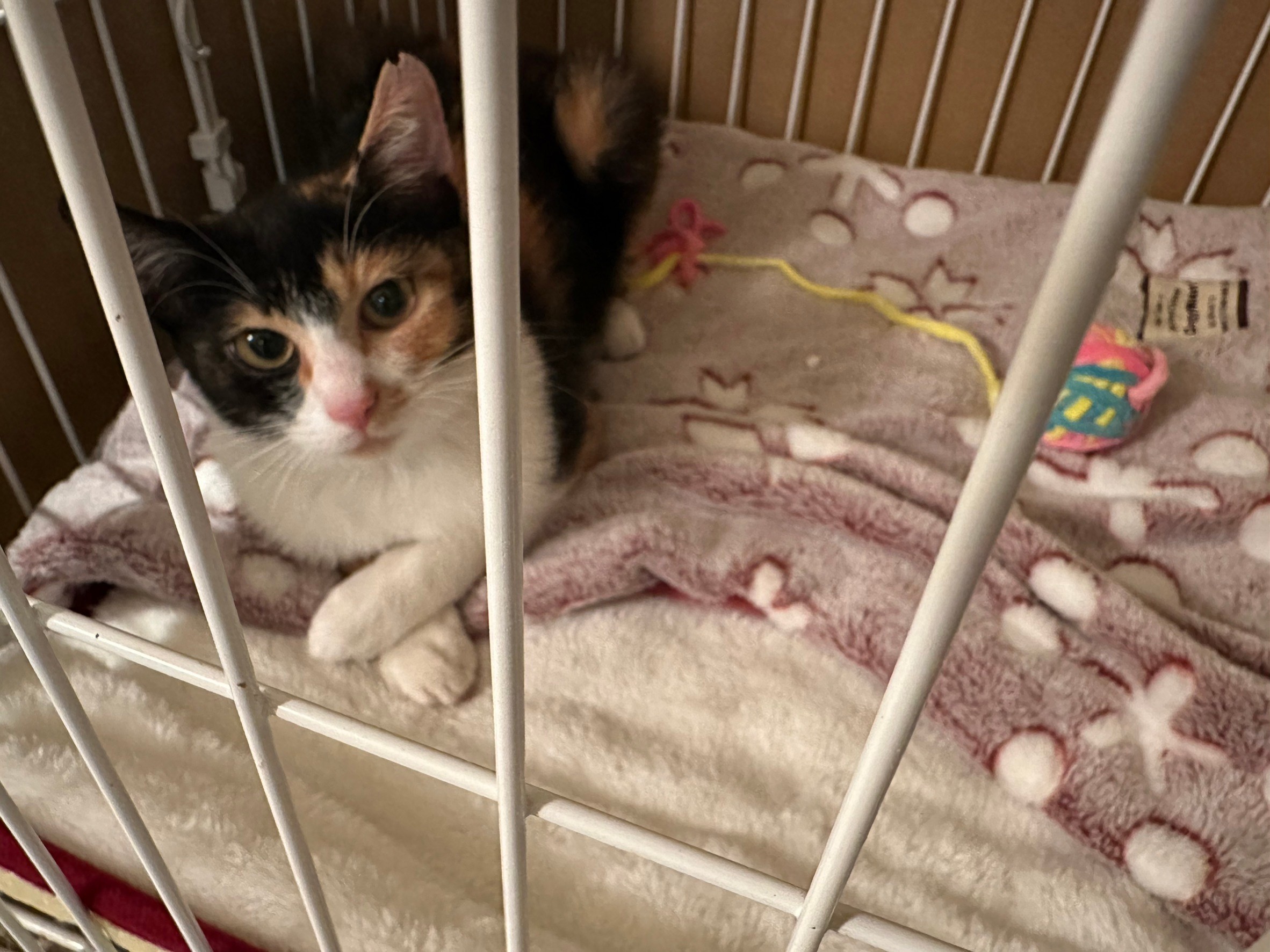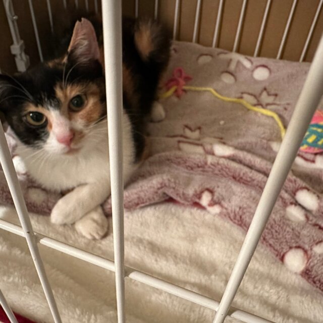 リリースするには危険な場所のため里親募集にいたりました、三毛猫の生後半年程の女の子です。