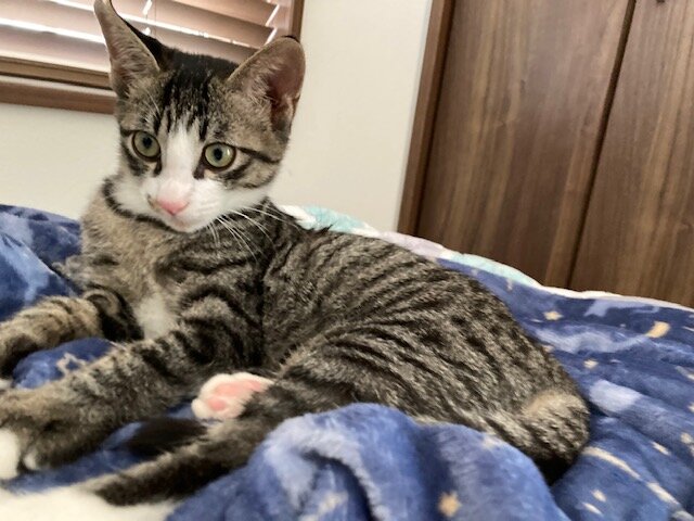 9月に親子3匹のネコがガリガリな状態で近所にいたため、母親に餌をあたえ(子猫は授乳中)、一時的に保護することにしました。皆すぐ元気になり、まずは避妊をしましたが、これからの寒さを考えますと、室内にいてほしいです。しかしながら、3匹をいっぺんに飼うのは難しく、飼い主さんが見つかりやすい子猫をお願いすることにしました。