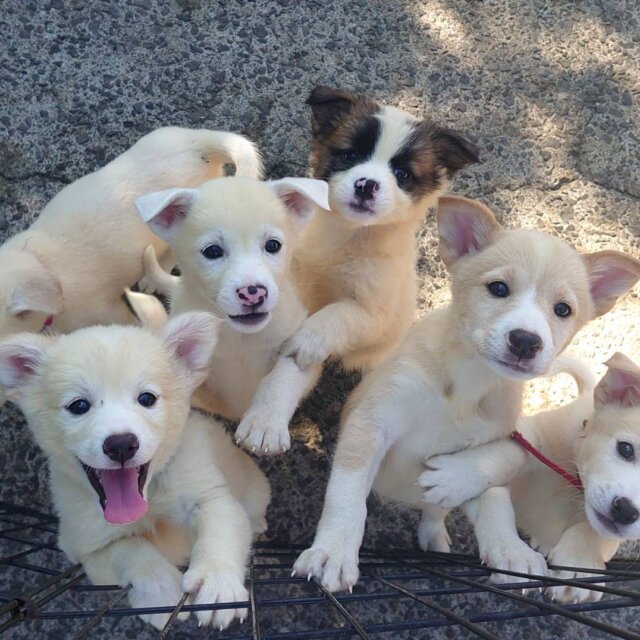 香川県の東讃保健所が保護した野良犬が収容中に保健所内で出産しました。母犬からミルクをもらい、しっかり大きくなったので子犬を引き出しました。