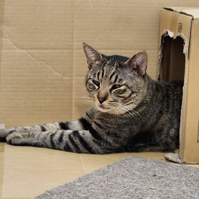 甘噛みはありますが、パンチもしない、スリスリ大好き男の子。恐らく2~3歳くらいかもとのこと。血液検査にて、白血病、エイズ共に陰性でした。