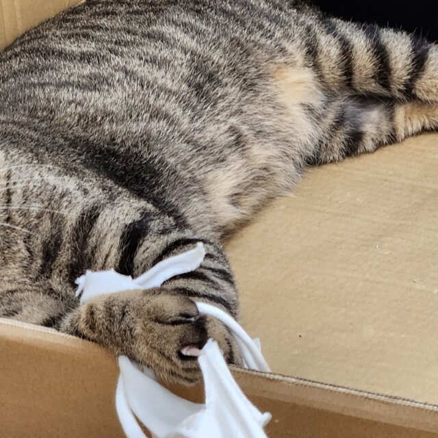 現在は猫じゃらしで遊びながら後肢の筋力低下を防いでいます。