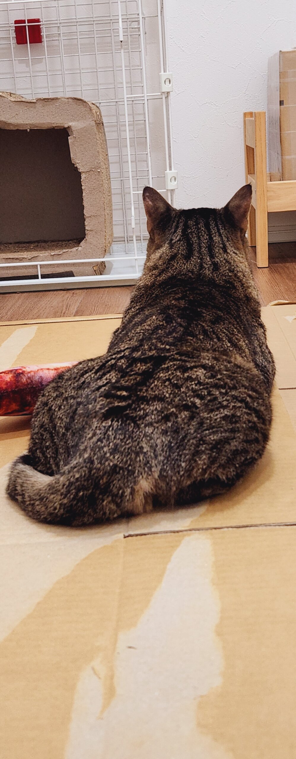 現在の後肢は少しおぼつくものの、普通に歩いて過ごせます‼️ただジャンプはできない為、高いところへは登りません。