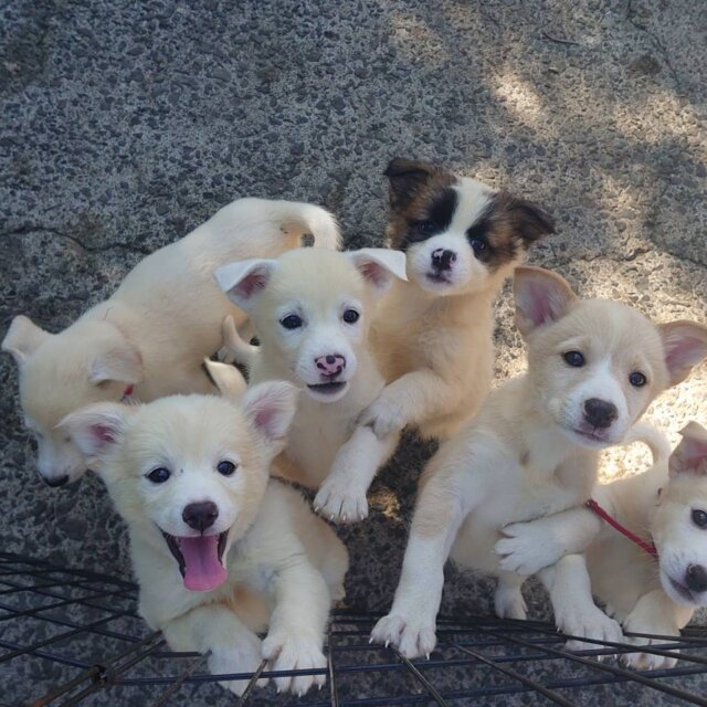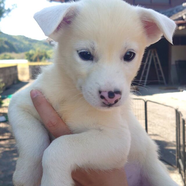 香川県の東讃保健所が保護した野良犬が収容中に保健所内で出産しました。母犬からミルクをもらい、しっかり大きくなったので子犬を引き出しました。
