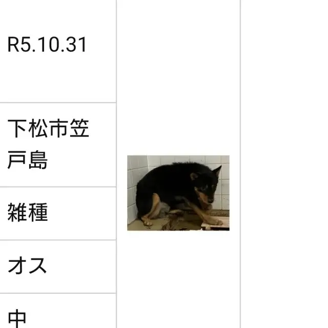 | 年齢/月齢 | 成犬 推定2歳前後 |