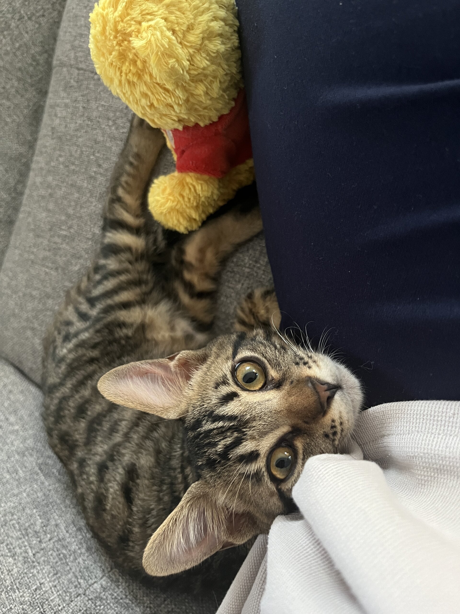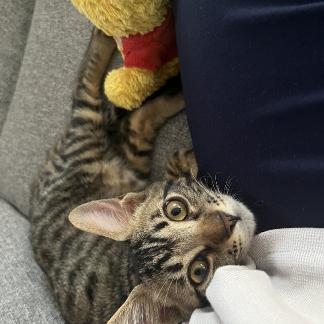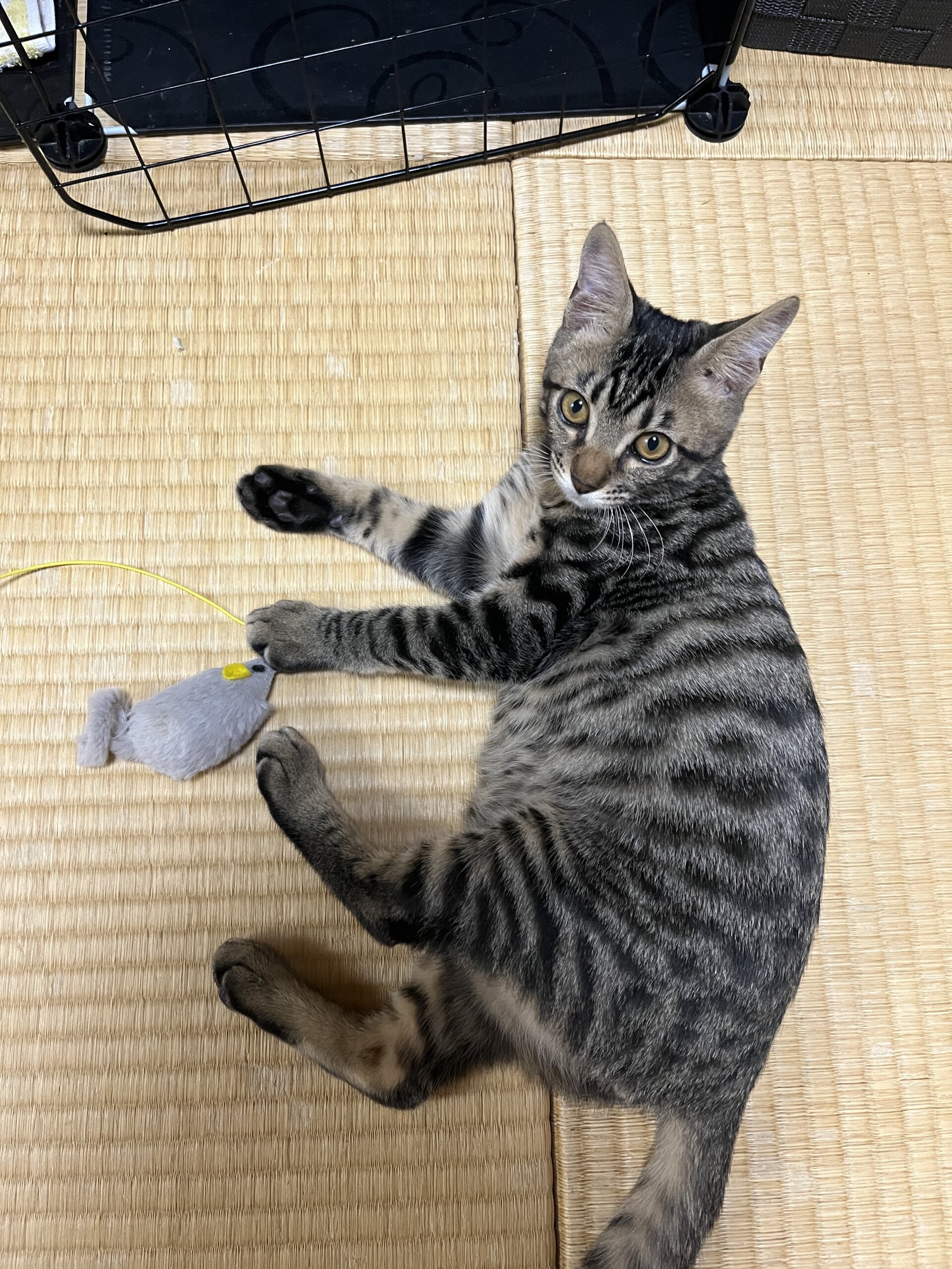子猫なので歯が痒かったりして甘噛みもしますが、人懐っこいです。