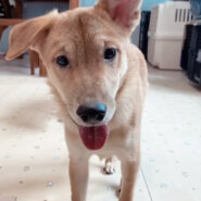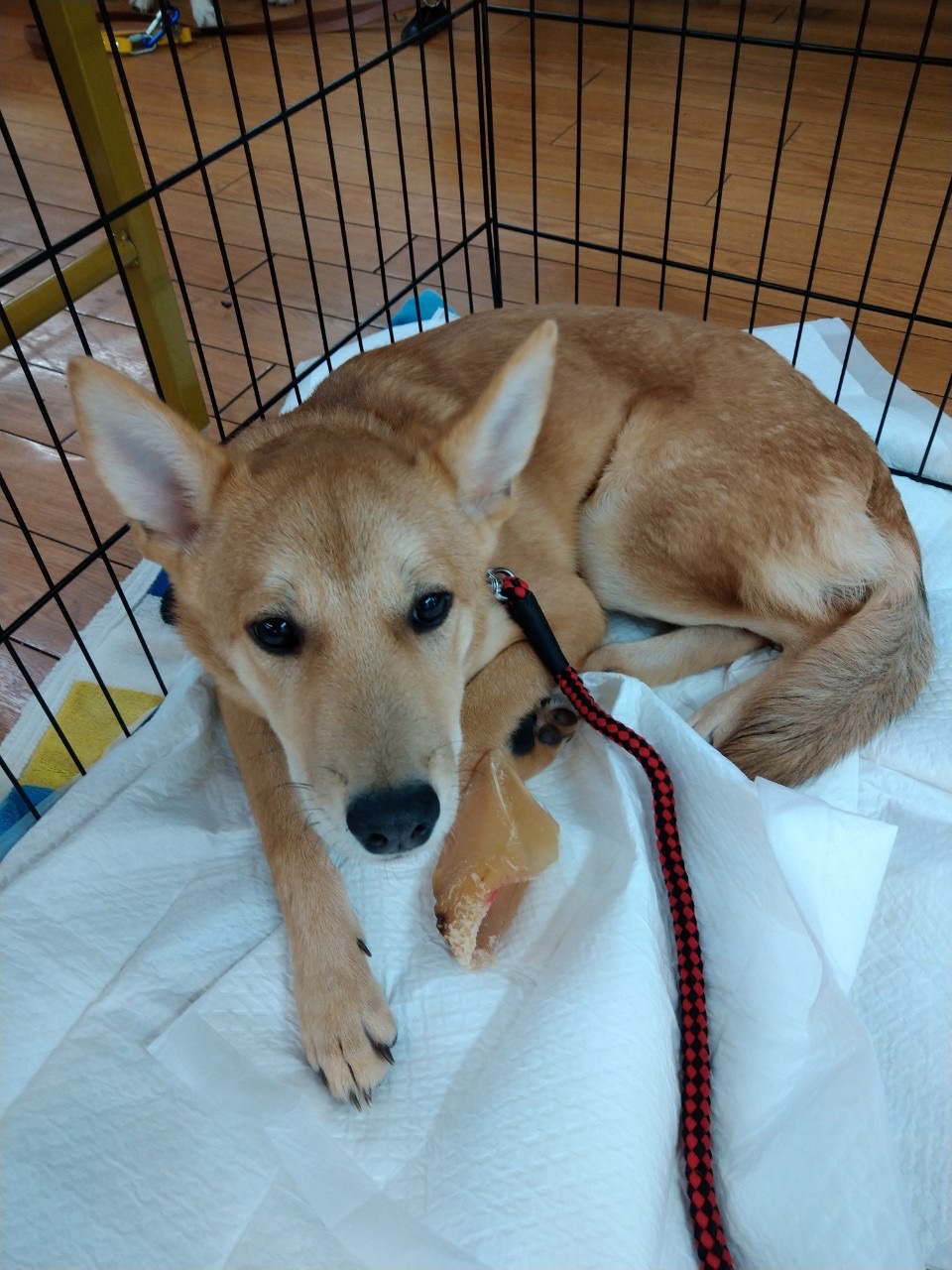 野犬の子なのでビビりですが、食欲旺盛、明るく元気な男の子(仮名はそら豆ちゃん)。これからいろんなこと、どんどん吸収していってくれると思います。
