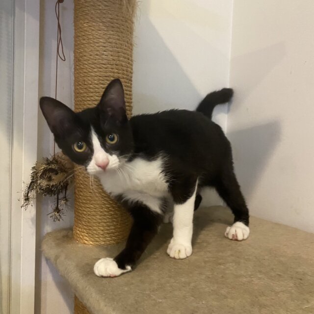 一人でおもちゃで遊ぶのも、人と一緒に遊ぶのもどちらも大好きです。そしてほかの猫とも仲良くできるように、猫慣れ訓練中!