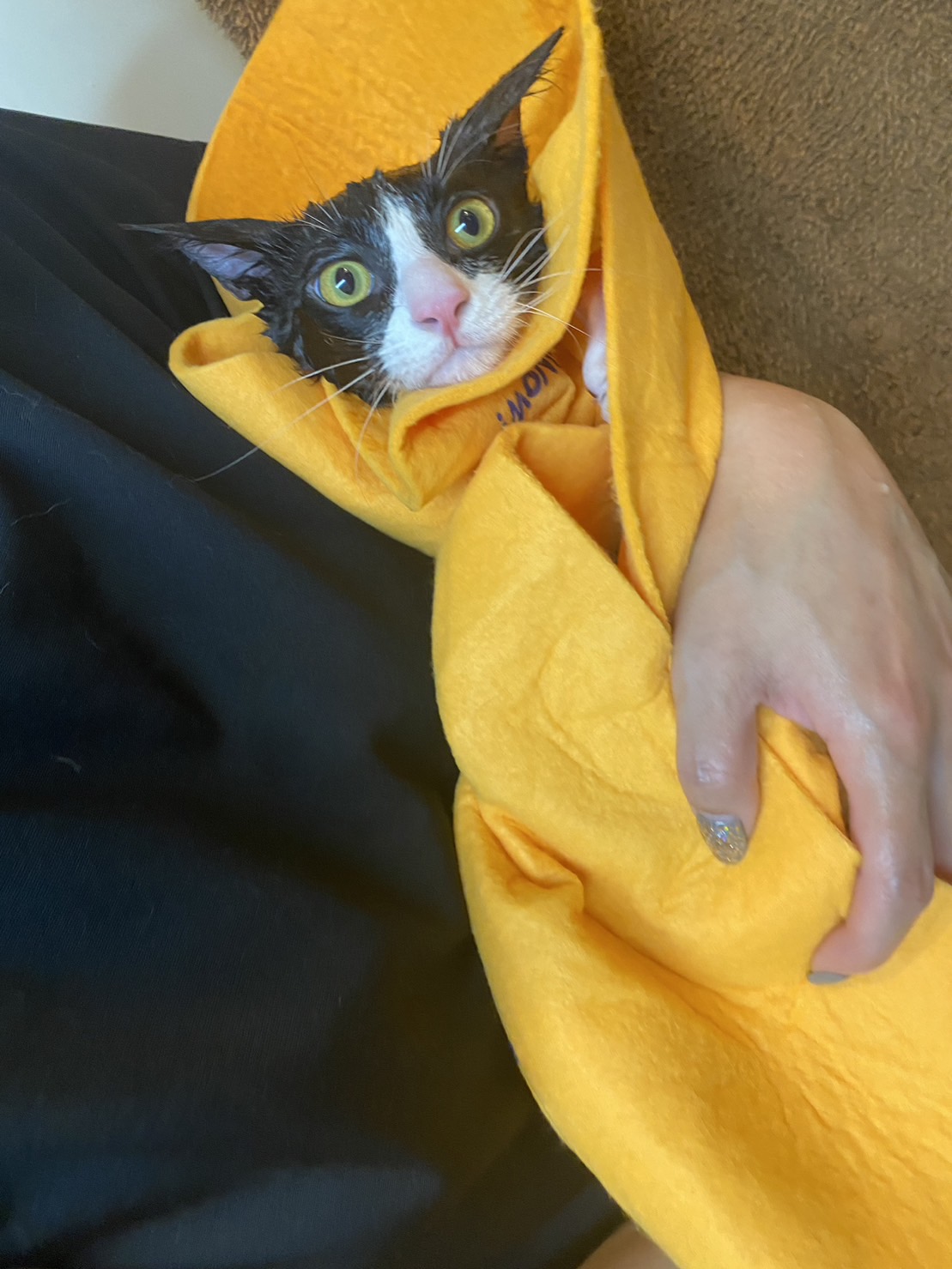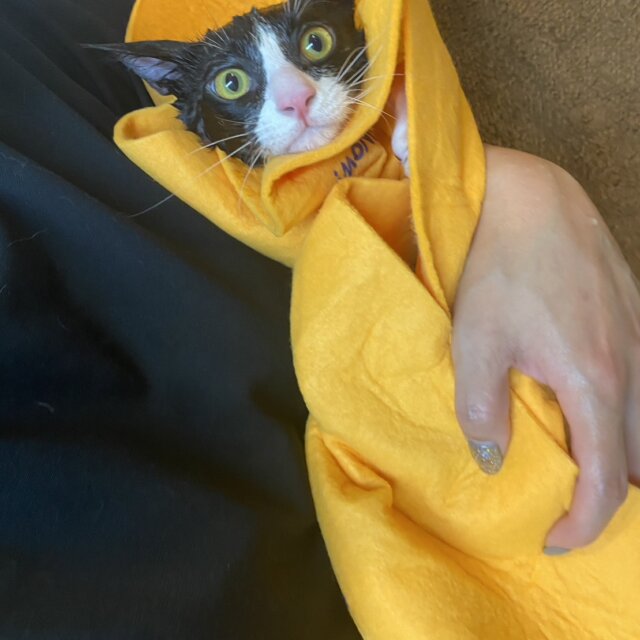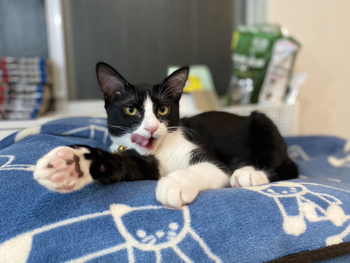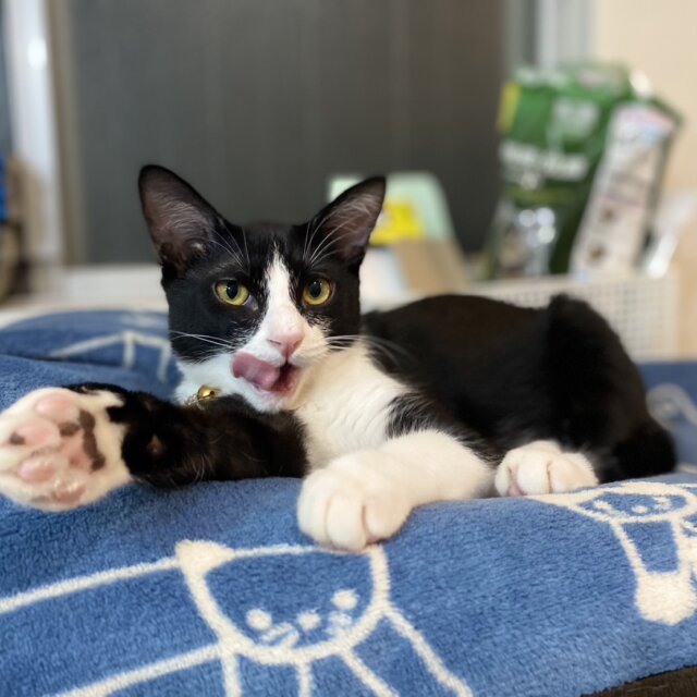 元気いっぱい、人が大好きなかまってちゃん!ほかの猫よりも、とにかく、とにかく!人間が大好き!!ケージの中から存在感のある大きな声で人を呼びます。膝に乗せると嬉しそうに(気持ちよさそうに)撫でられています。ご飯も人の手から食べるほうが好きそうだと最近わかりました。それくらい甘えん坊で人の事が大好きなんです。