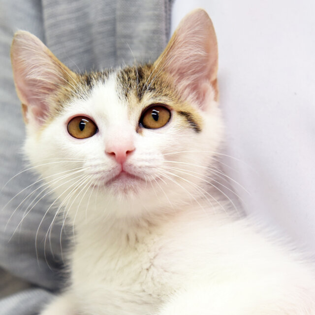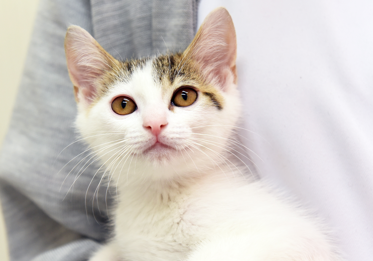 人間の保護下で生まれ、母猫の愛情を受け、兄弟と身を寄せ合って育ちましたので、屈託のないやんちゃボーイになりました。穏やかに誰にでも抱っこさせ、ゴロゴロいって甘える、人なつこい良い子です。